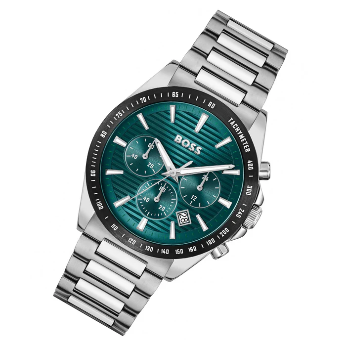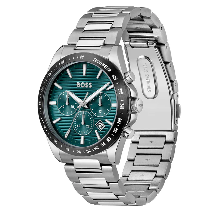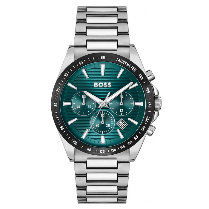 ساعة هوجو بوس  أصليه للرجال موديل 1514241 لون اخضر و استيك معدن لون فضي.