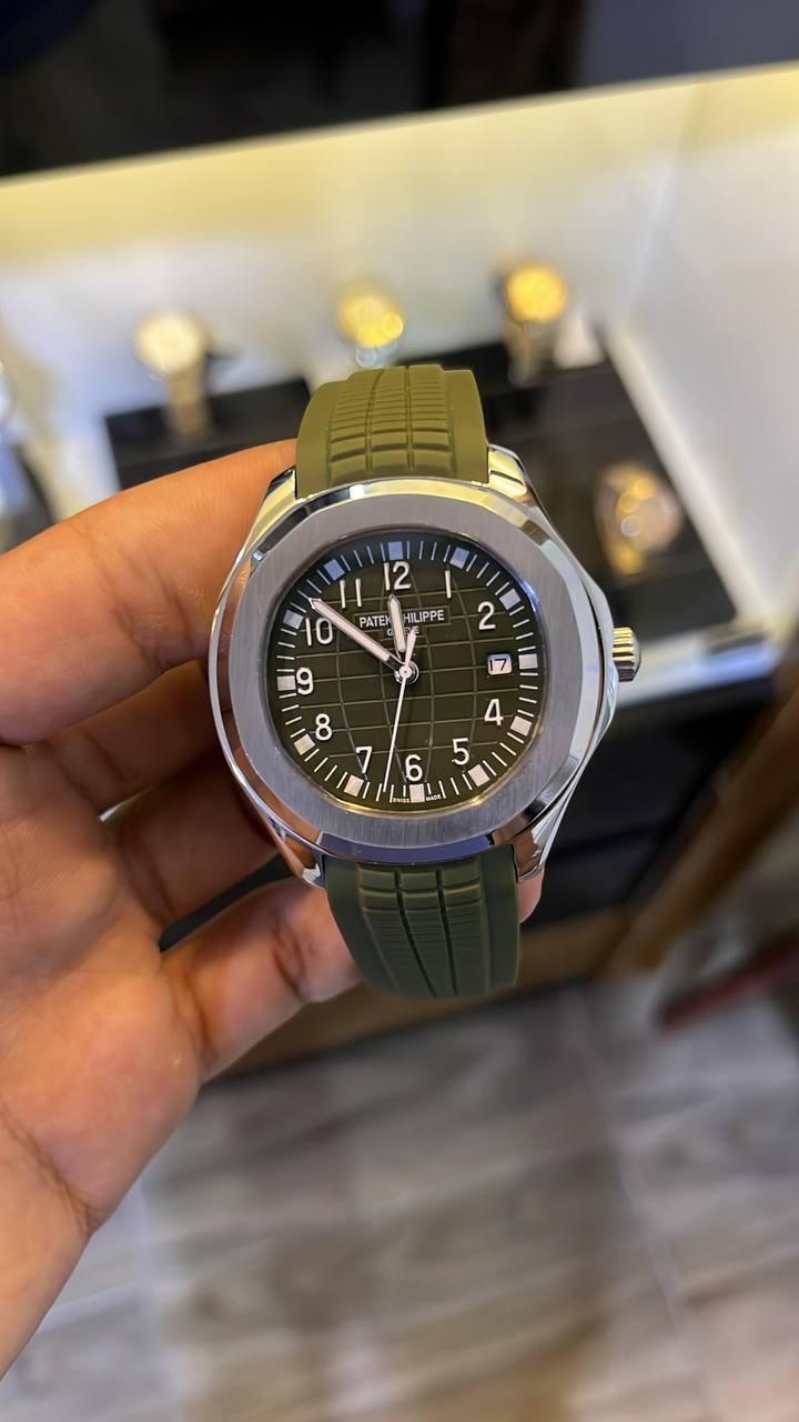 ساعة من Patek Philippe تعمل بمينا بلون اخضر وسير اخضر من المطاط