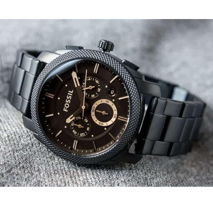 ساعة فوسيل للرجال اصلية موديل (ماشين) Machine FS4682 بلون اسود واستيك معدن بلون اسود