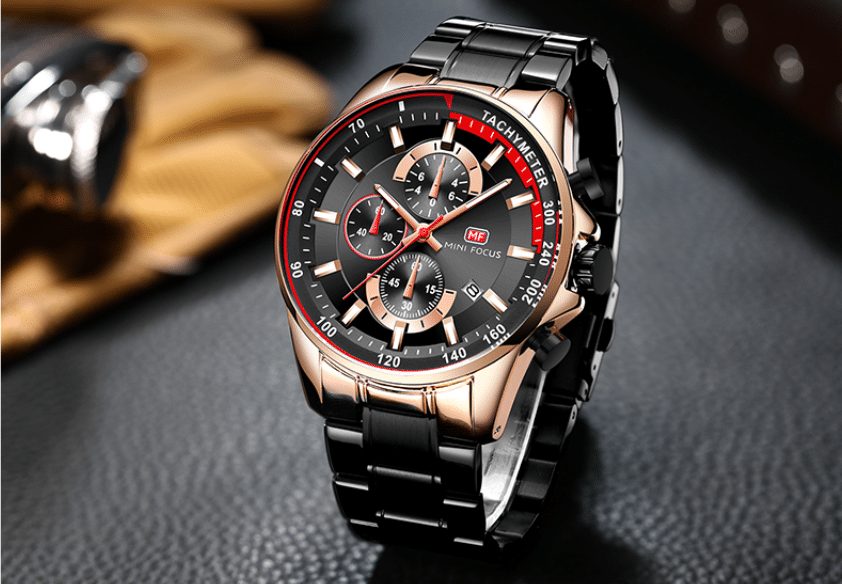 ساعة ميني فوكاس رجالي أصلية موديل MF0218.02 بلون اسود و استيك معدن بلون اسود
