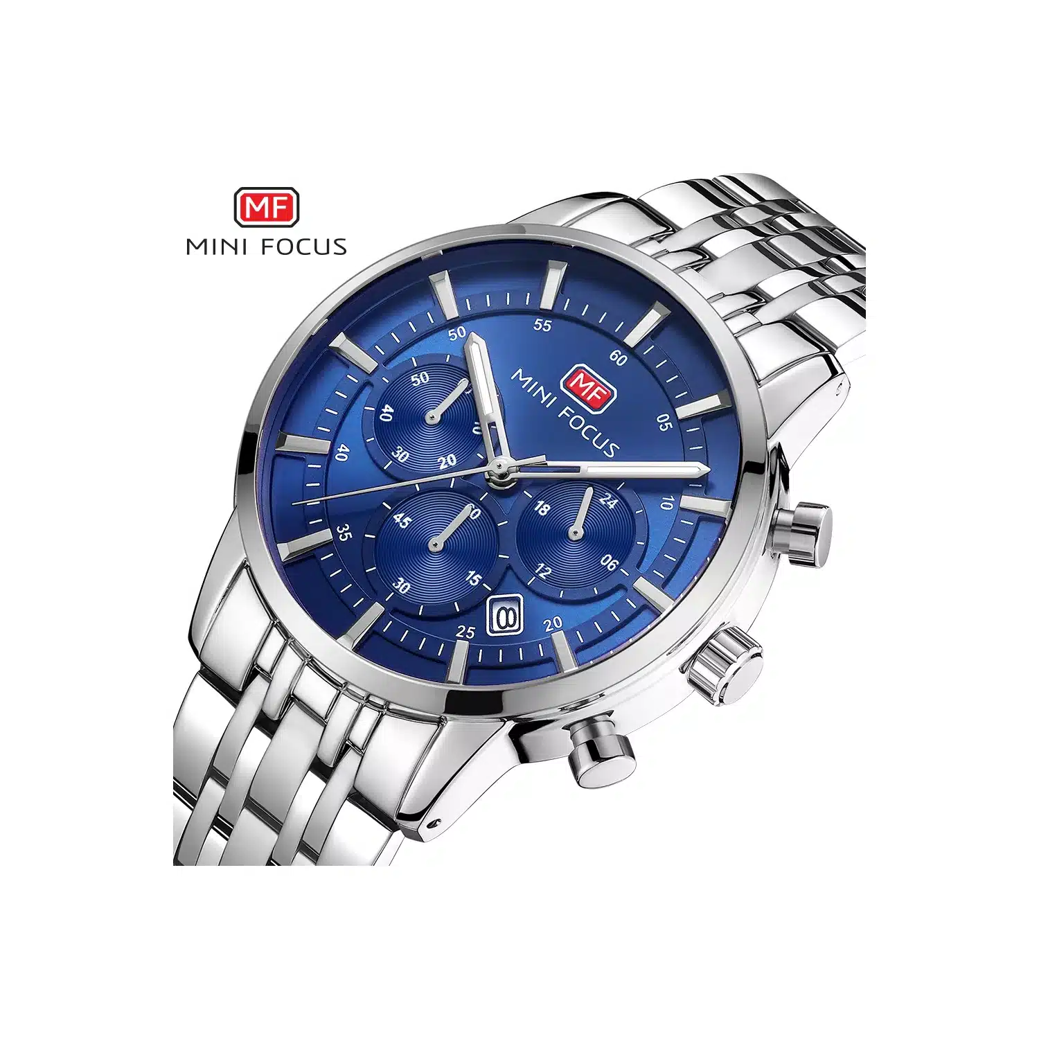 ساعة ميني فوكاس رجالي أصلية موديل MF0282g.03 بلون ازرق و استيك معدن بلون فضي