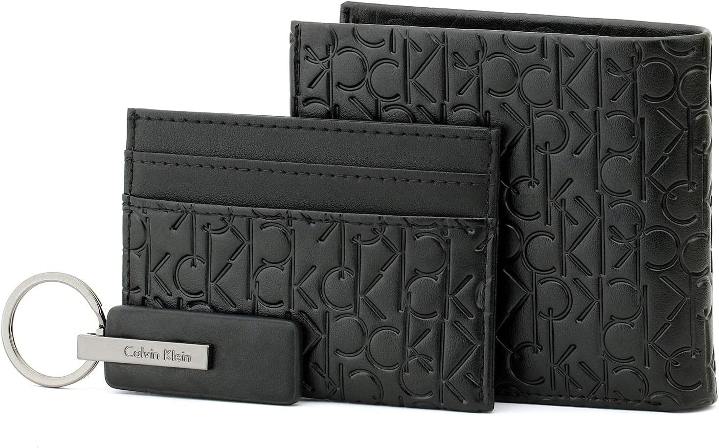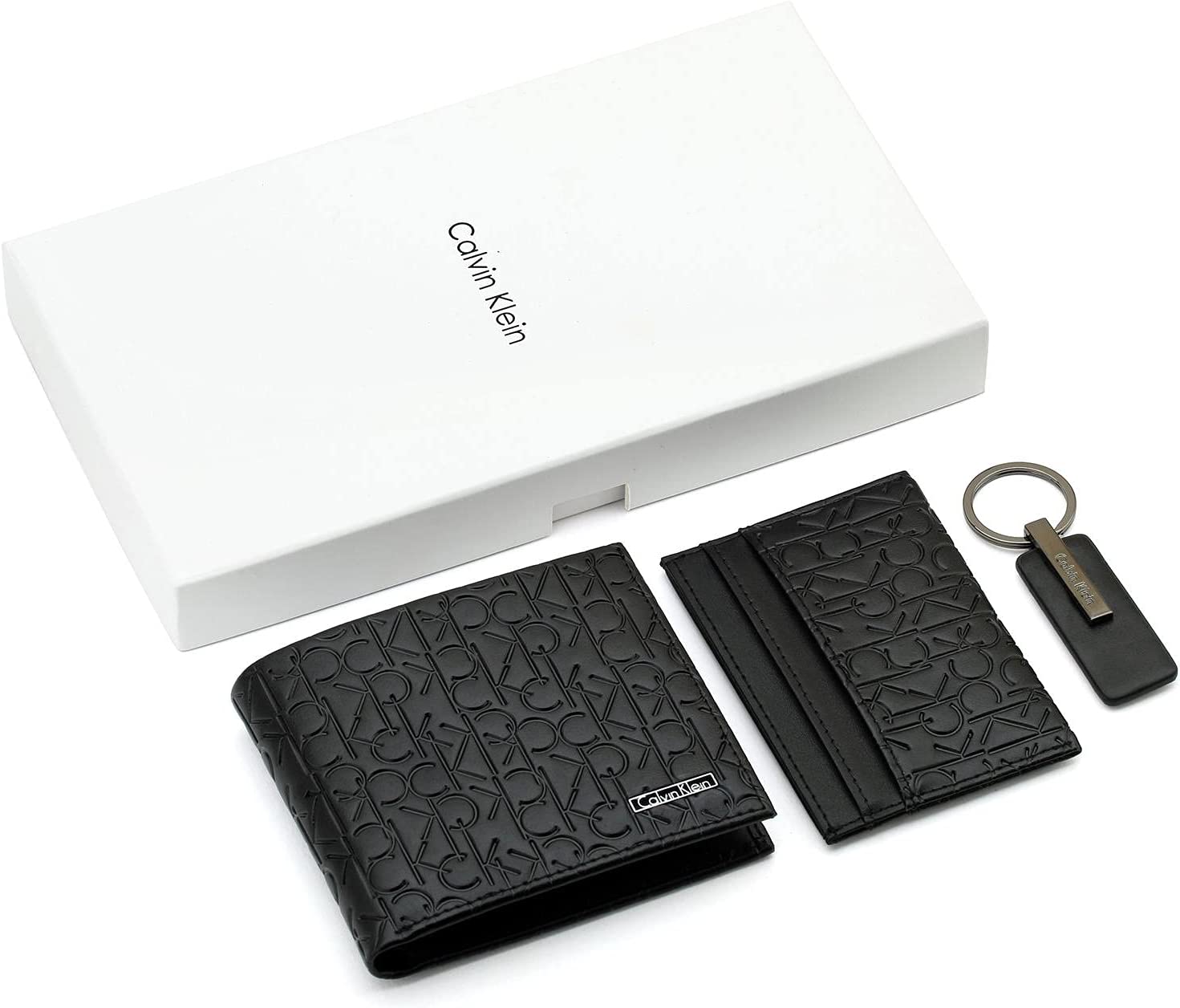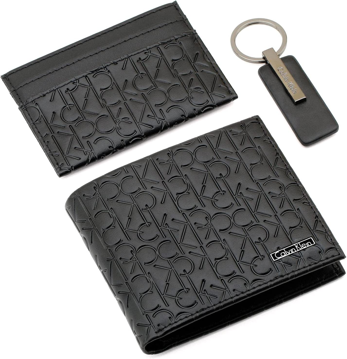 محفظه كالفن كلاين للرجال ثلاث قطع، جلد ، اسود