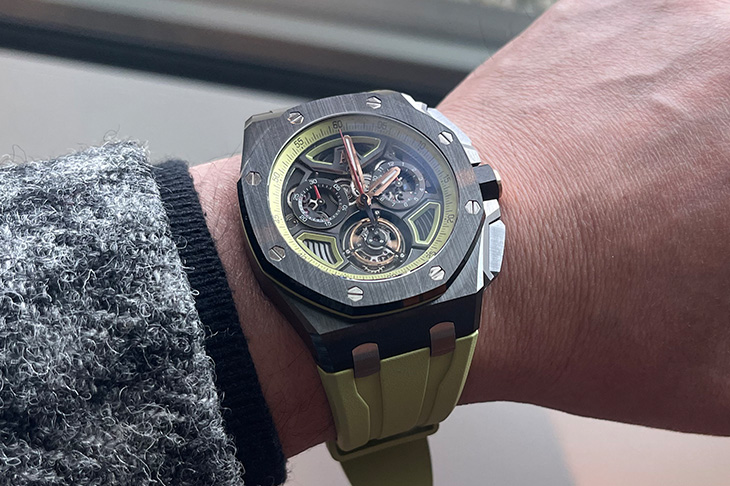 Audemars Piguet watch Audemars Piguet Men's mirror original model Royal Oak Offshore 26622CE.OO.D062CA.01 لون اسود * اخضر و استيك سيليكون مطاط لون اخضر.