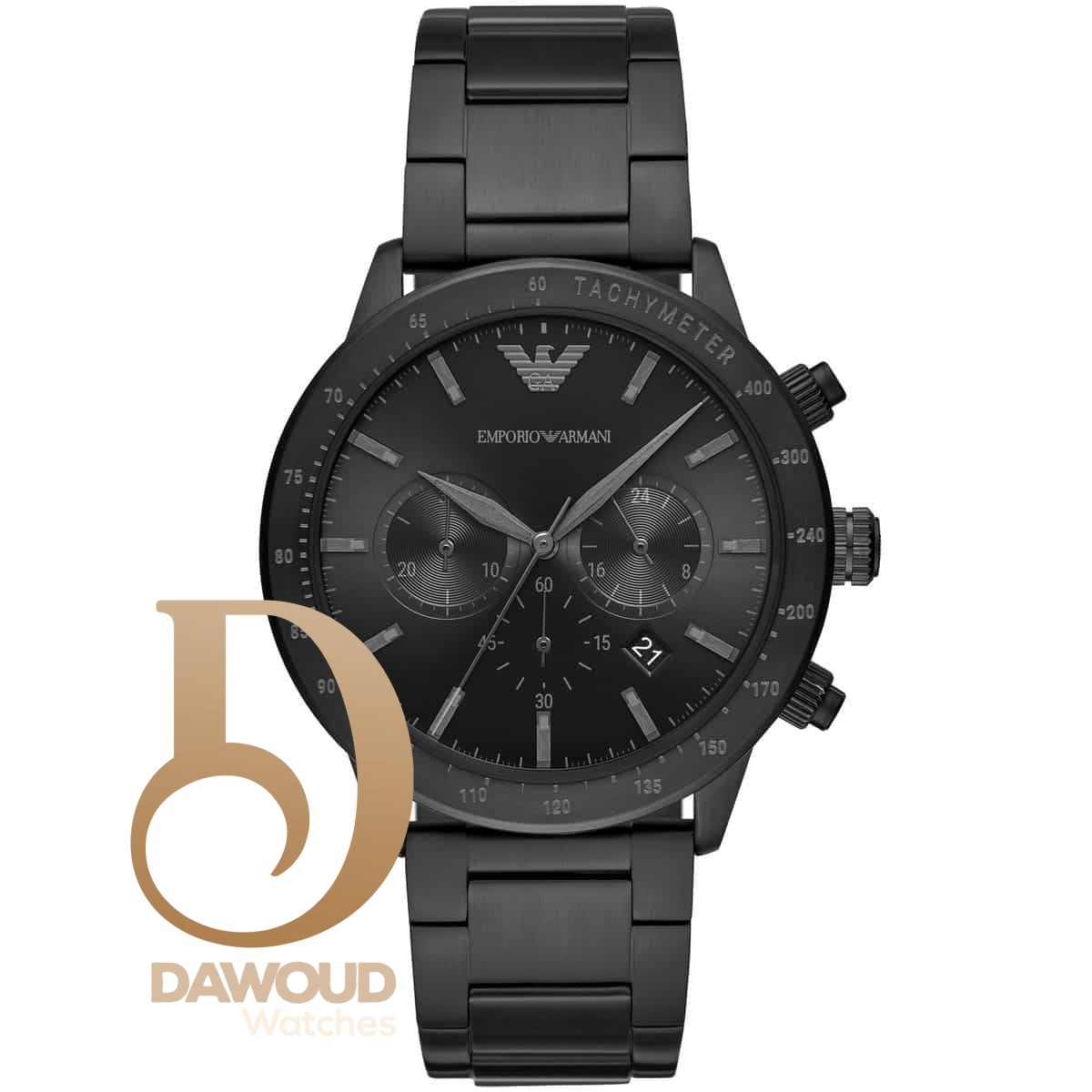 ساعة امبوريو ارماني رجالي أصلية موديل (ماريو) Mario AR11242 بلون اسود و استيك معدن بلون اسود