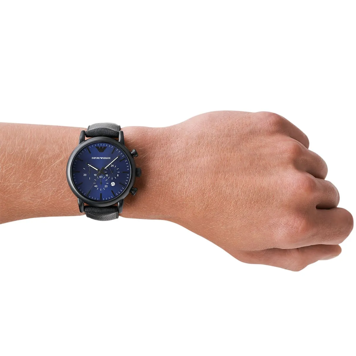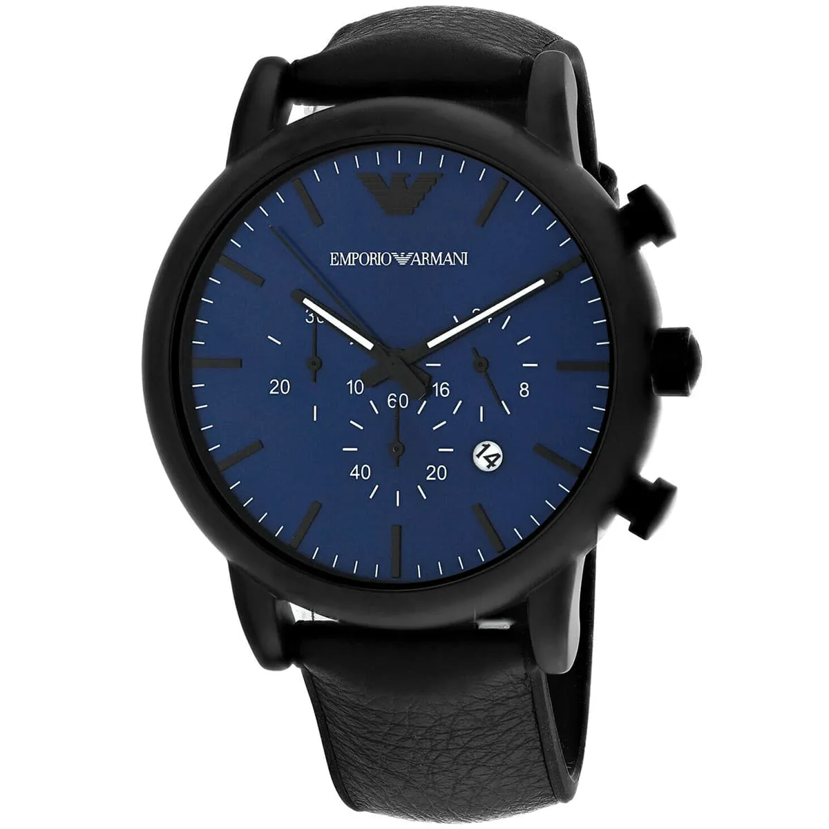 ساعة امبوريو ارماني كرونوغراف Emporio Armani للرجال أصلية موديل Luigi AR11351 لون ازرق و استيك جلد لون اسود.