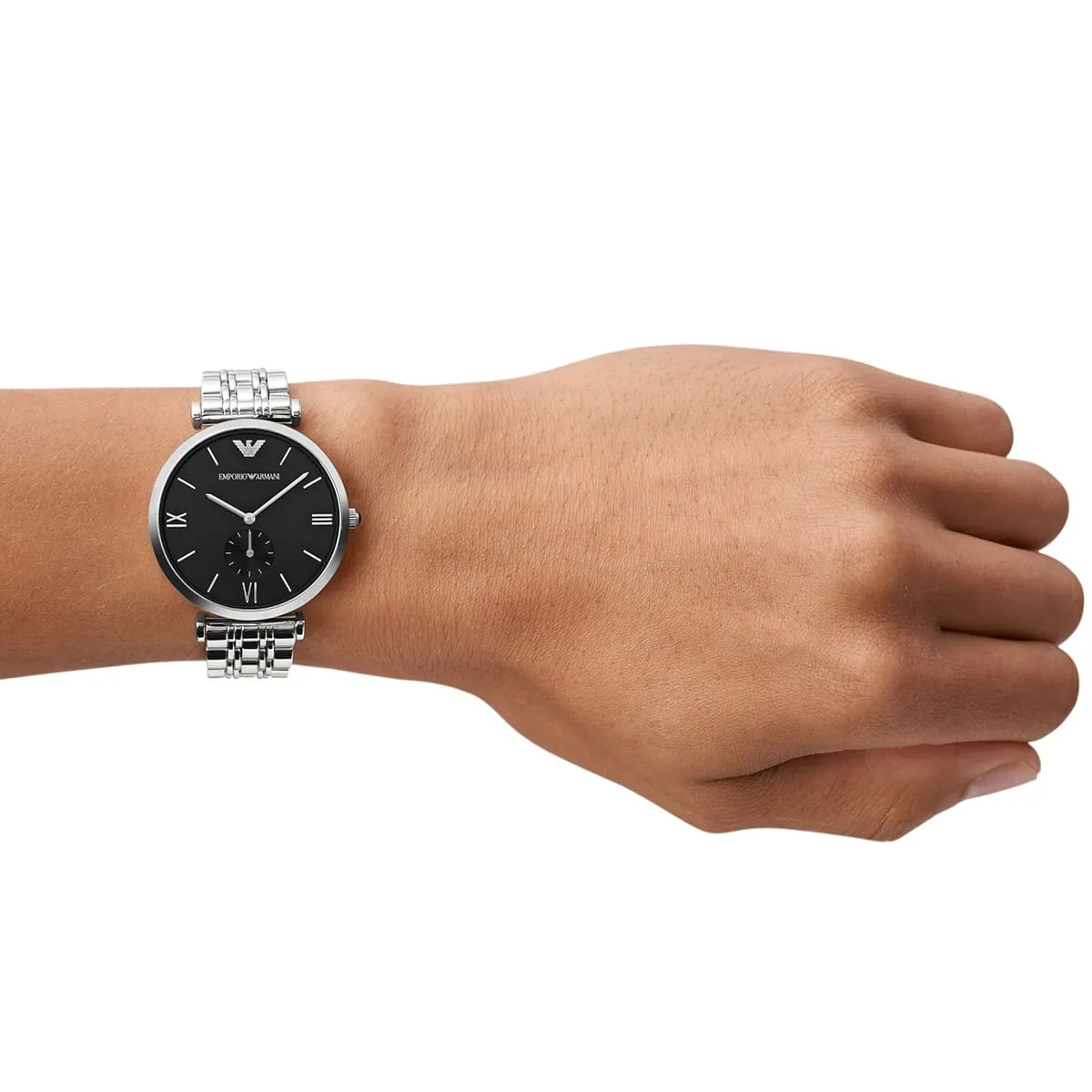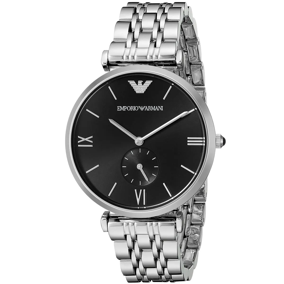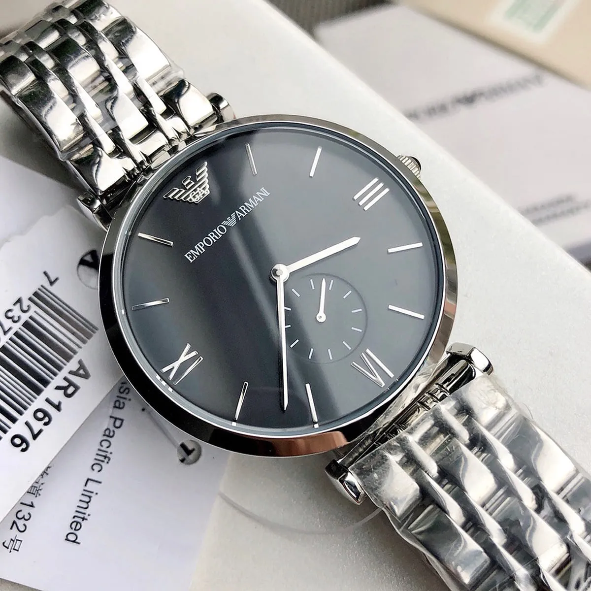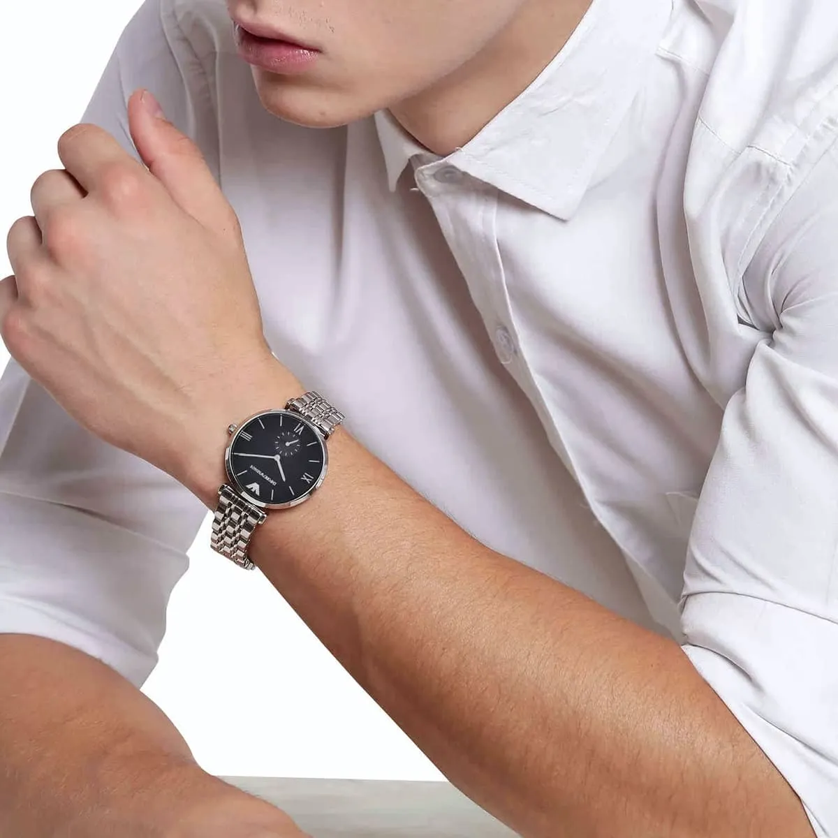Emporio Armani watch Emporio Armani للرجال أصلية موديل Gianni Medium AR1676 لون اسود و استيك معدن لون فضي.