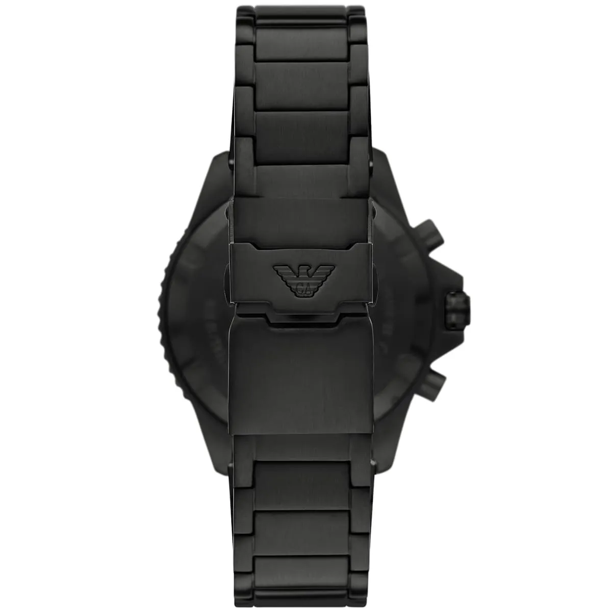 ساعة امبوريو ارماني كرونوغراف Emporio Armani للرجال أصلية موديل Diver AR80050 لون اسود و استيك معدن لون اسود.