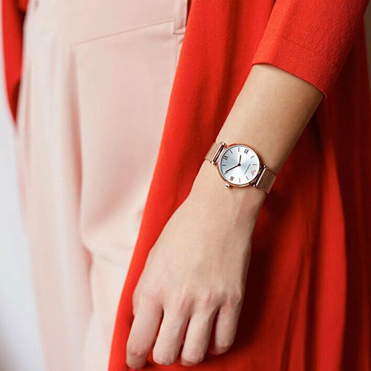 يغطي الضمان عيوب التصنيع في حركة الساعة والأجزاء الداخلية.
