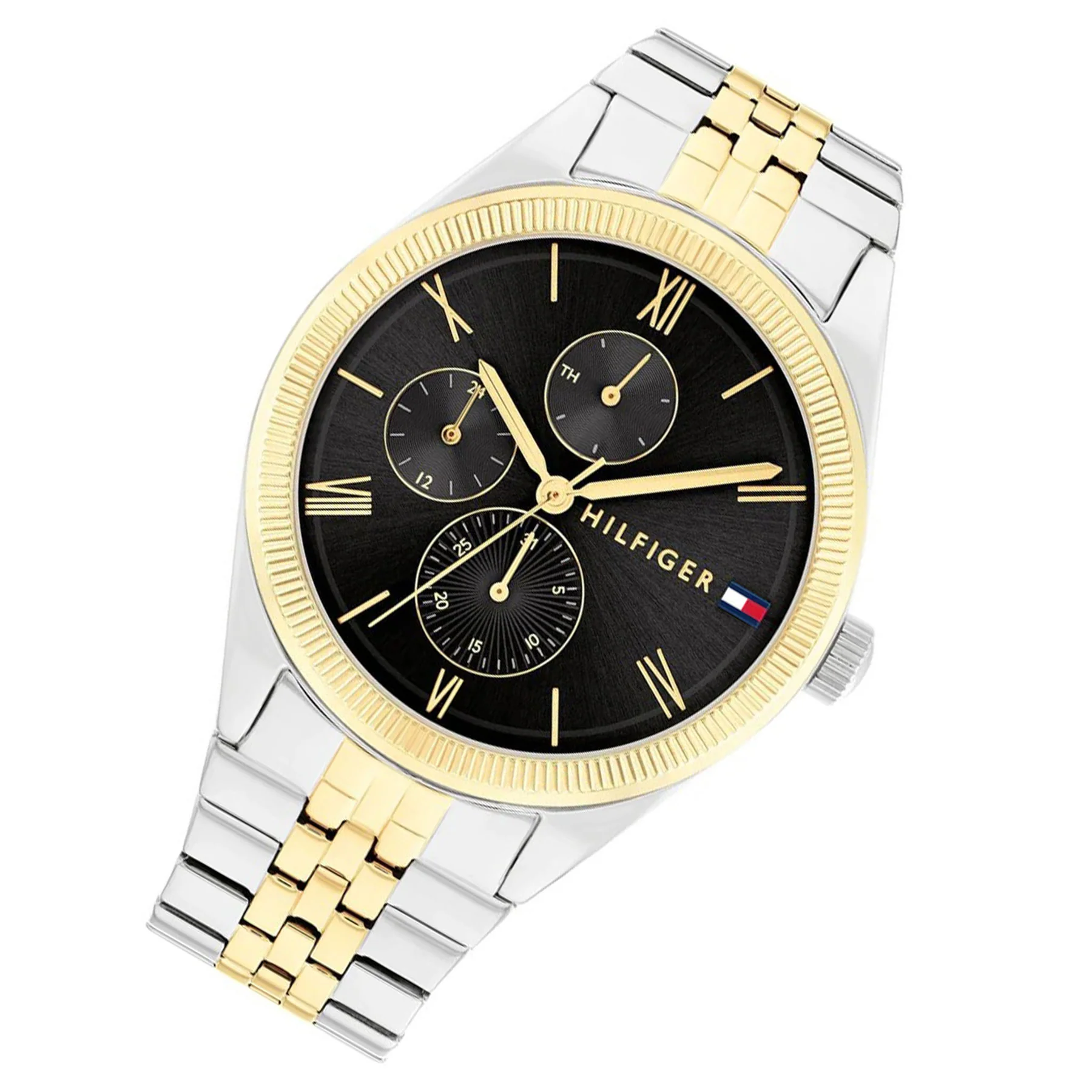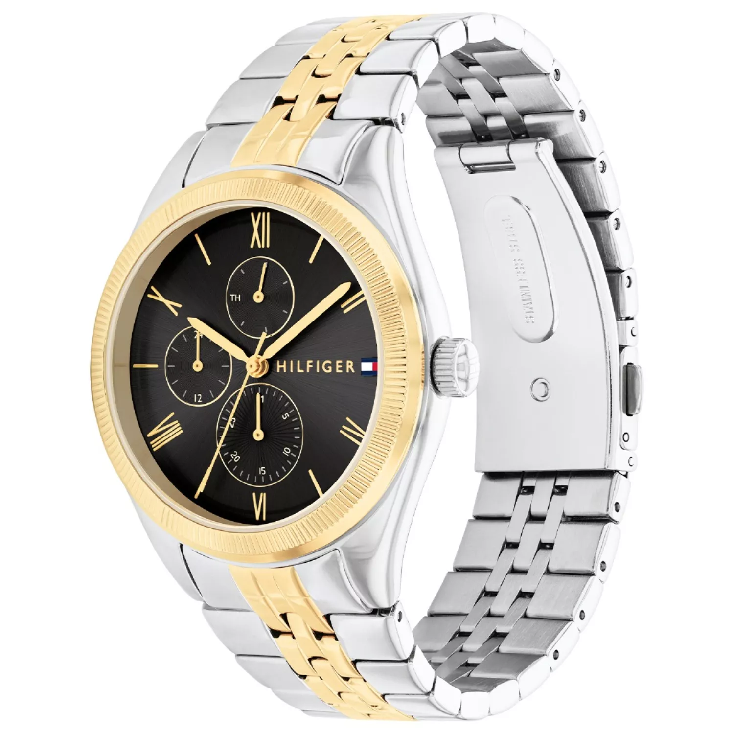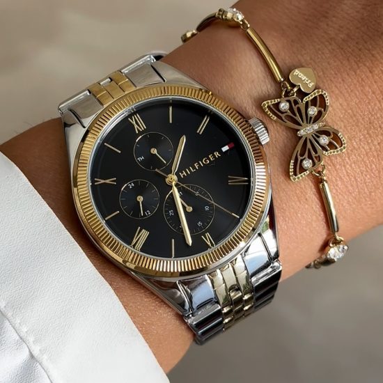 ساعة تومي هيلفيغر للنساء أصلية موديل 1782591 لون اسود و استيك معدن ستانلس لون فضي * ذهبي.