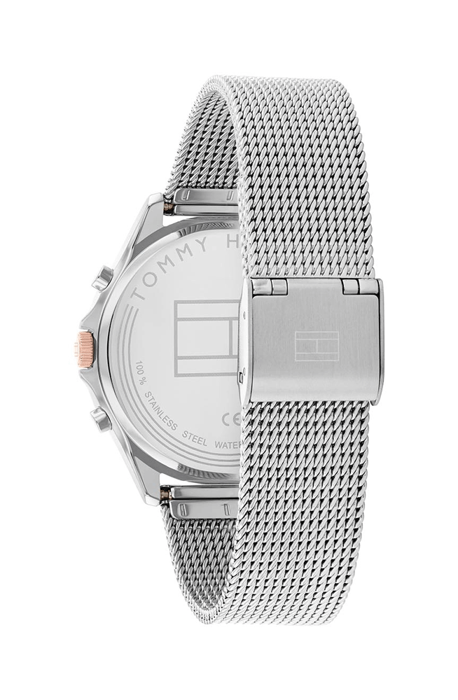 ساعة تومي هيلفيغر للنساء أصلية موديل 1782416 لون فضي و استيك معدن ستانلس لون فضي.