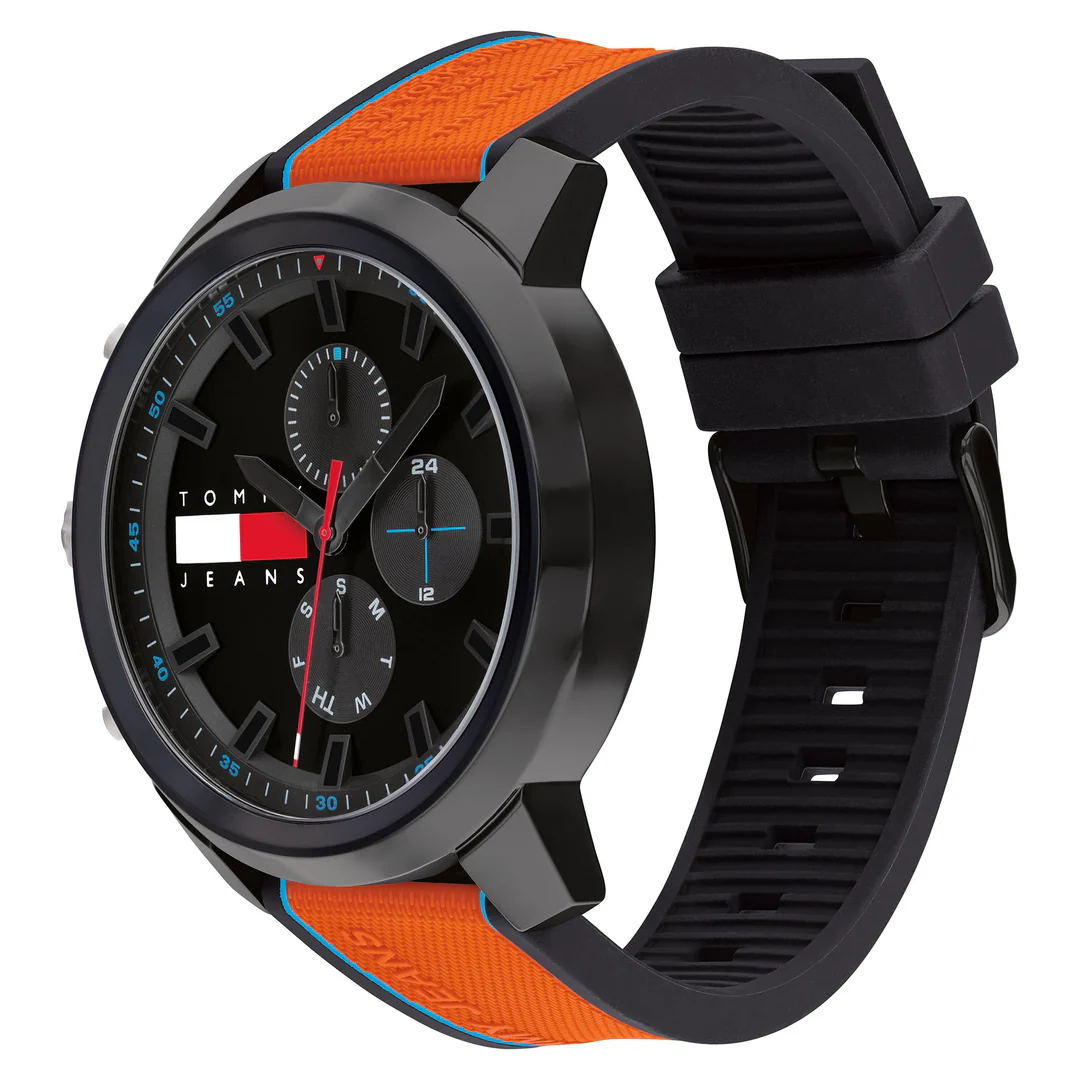 Tommy Hilfiger watch Tommy Hilfiger للرجال أصلية موديل 1710583 لون اسود و استيك سيليكون مطاط لون اسود * برتقالي.