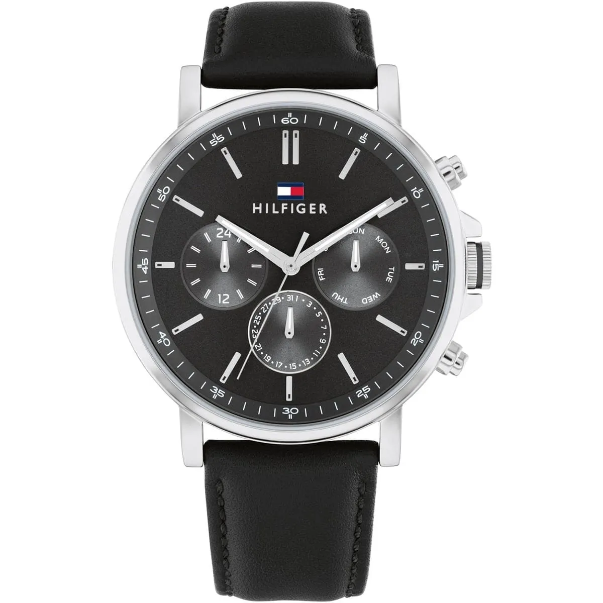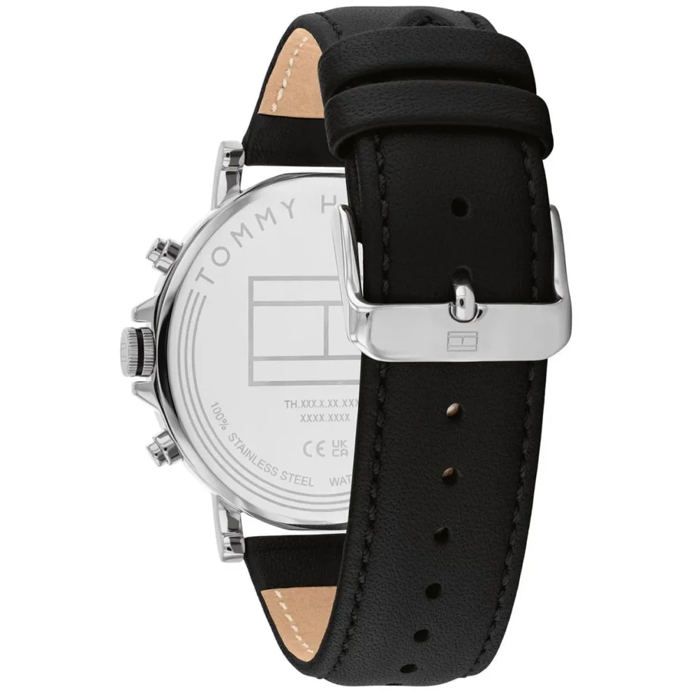 ساعة تومي هيلفيغر للرجال أصلية موديل لون أسود و استيك جلد طبيعي لون أسود.