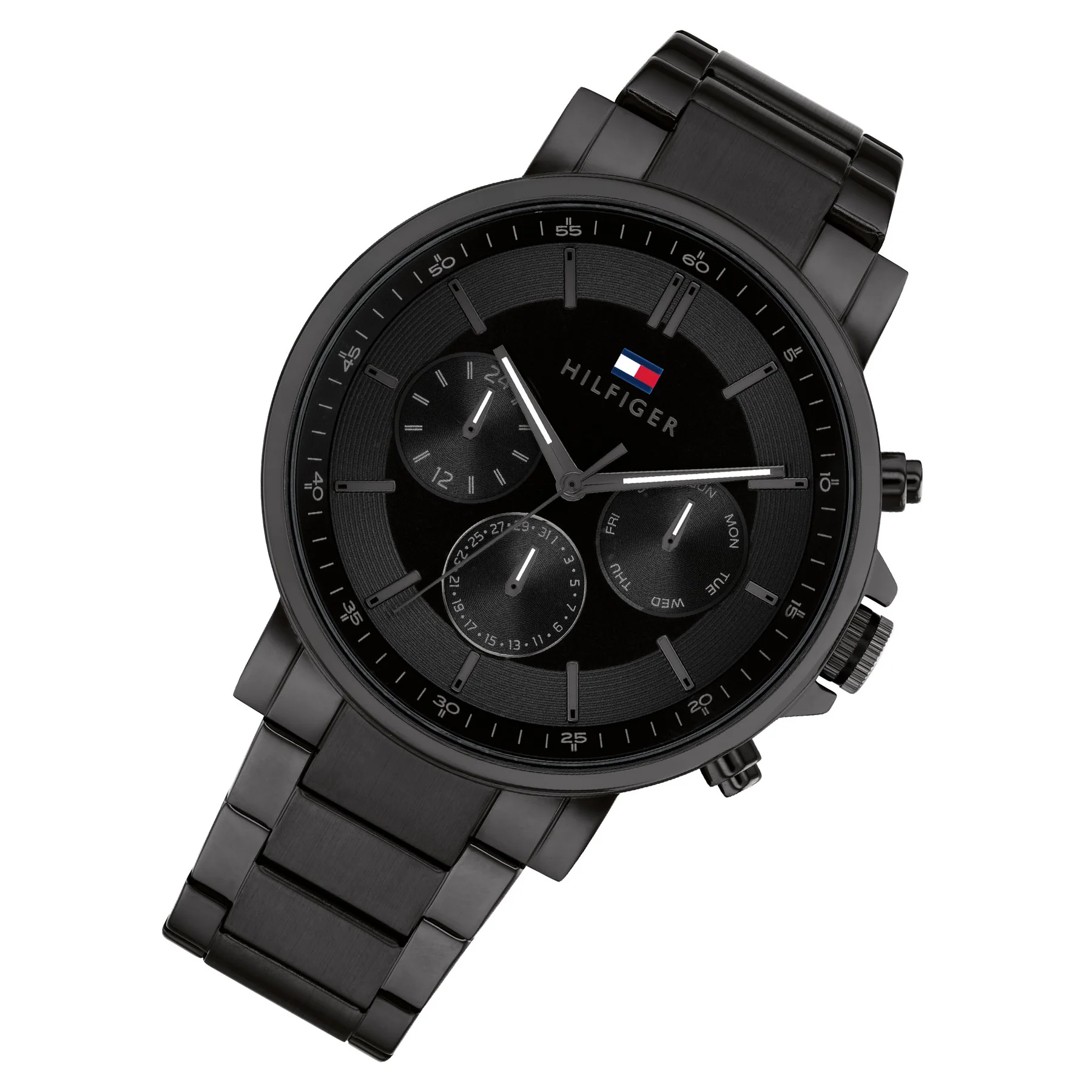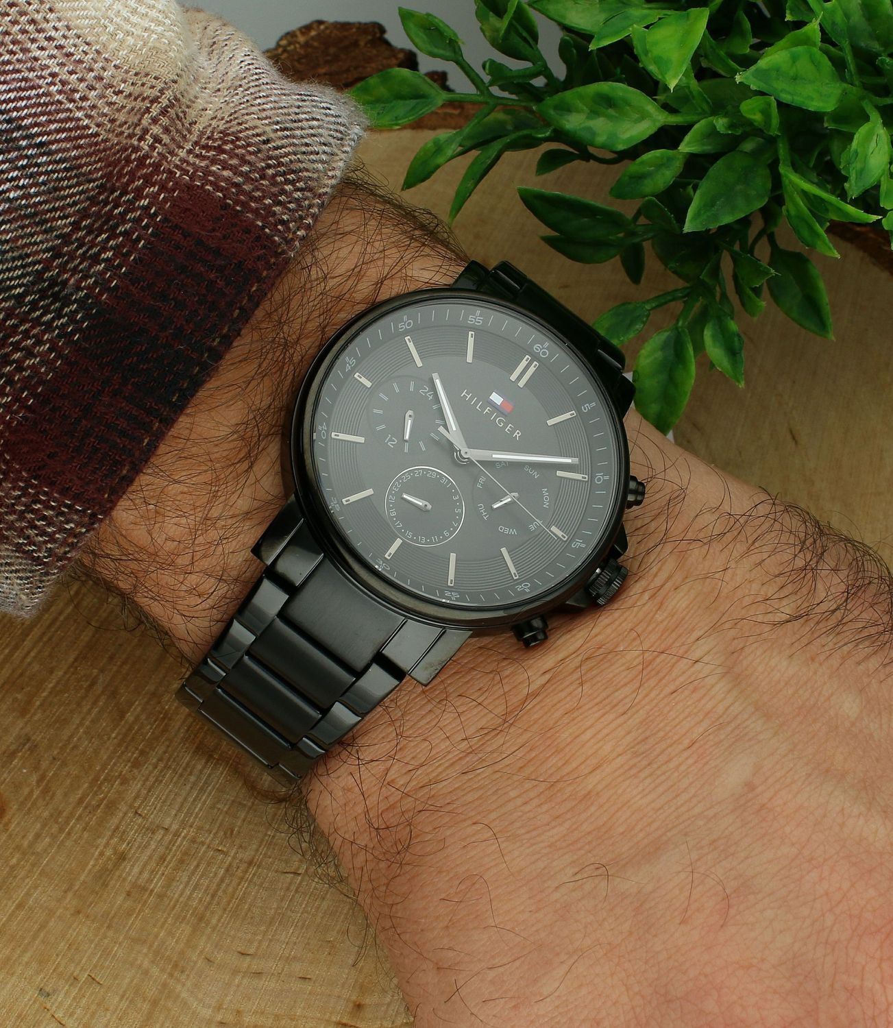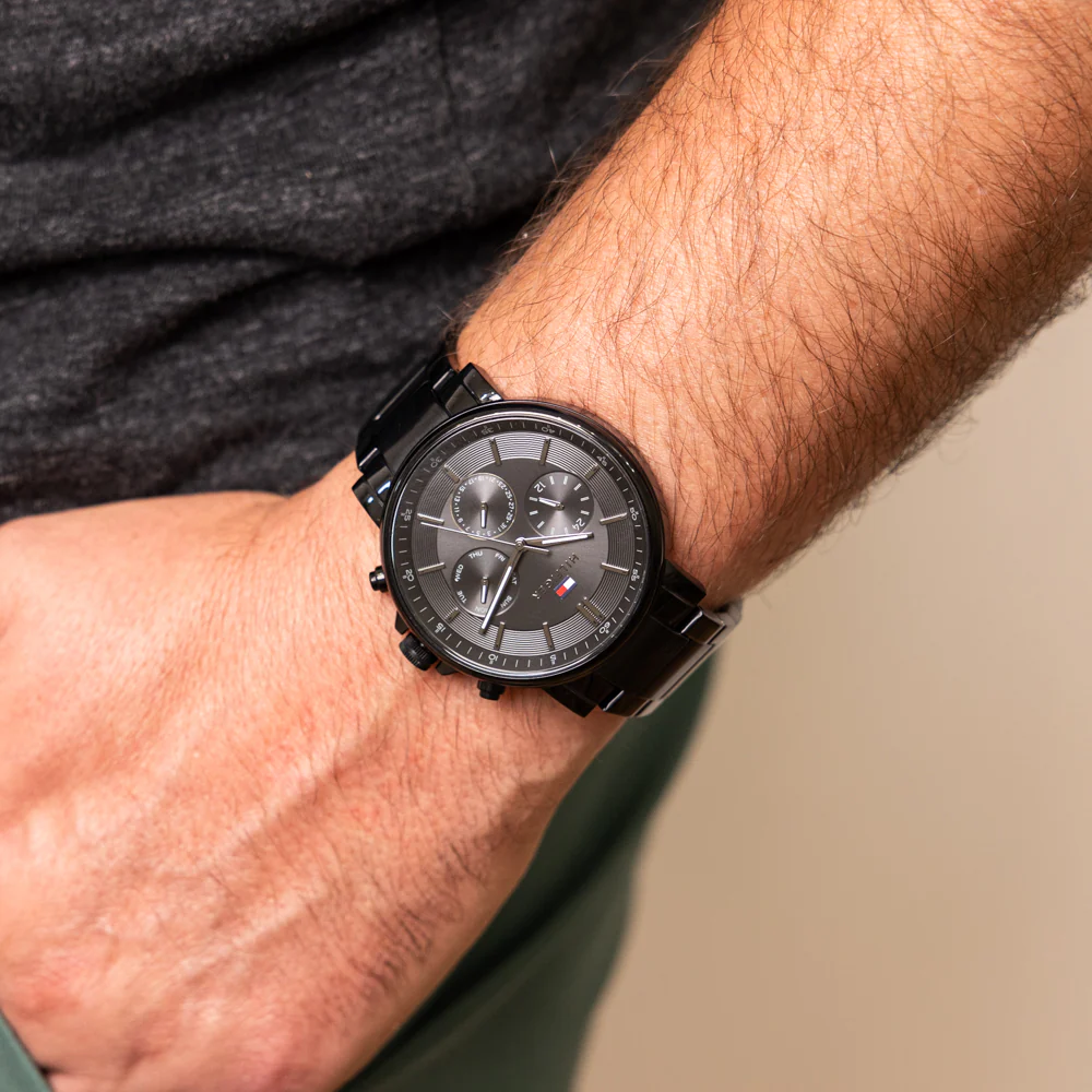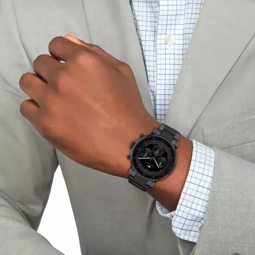 Tommy Hilfiger watch Tommy Hilfiger للرجال أصلية موديل 1710590 لون اسود و استيك معدن ستانلس ستيل لون اسود.
