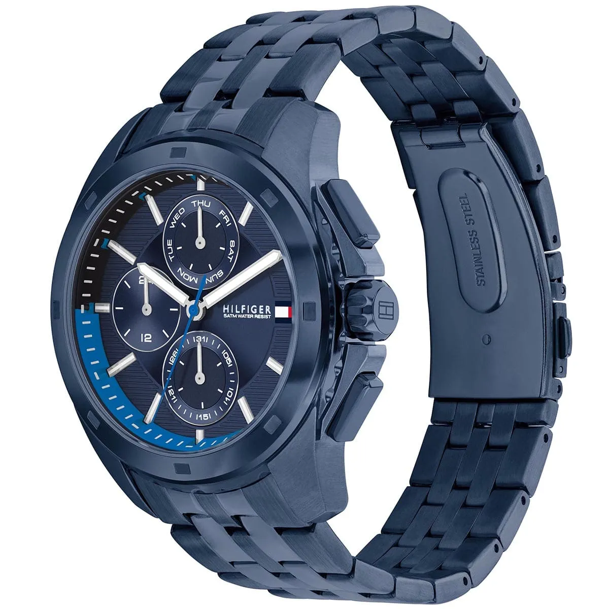 تومي هيلفيغر للرجال أصلية موديل لون أزرق و استيك معدن ستانلس لون أزرق.