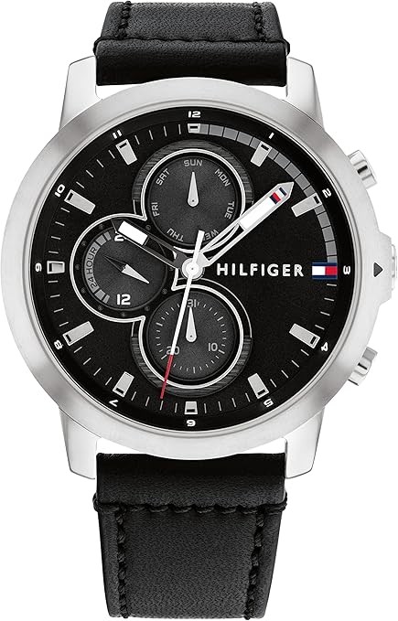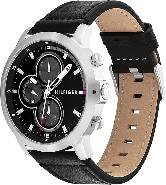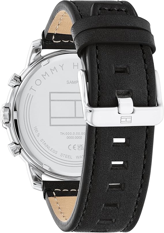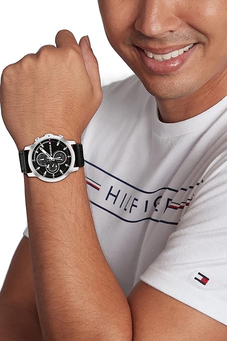 ساعة تومي هيلفيجر أصلية للرجال جيمسون 1792052 بمينا سوداء وحزام جلدي أسود