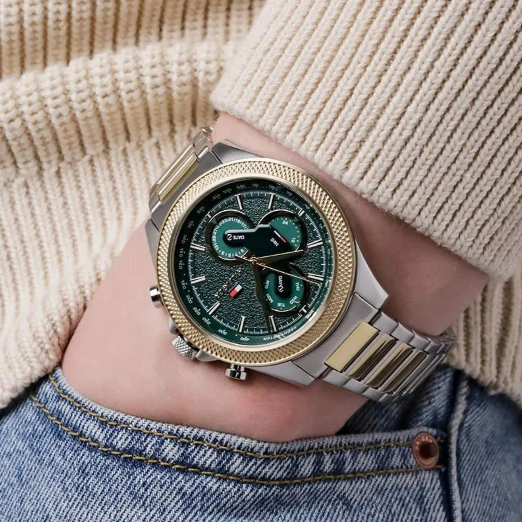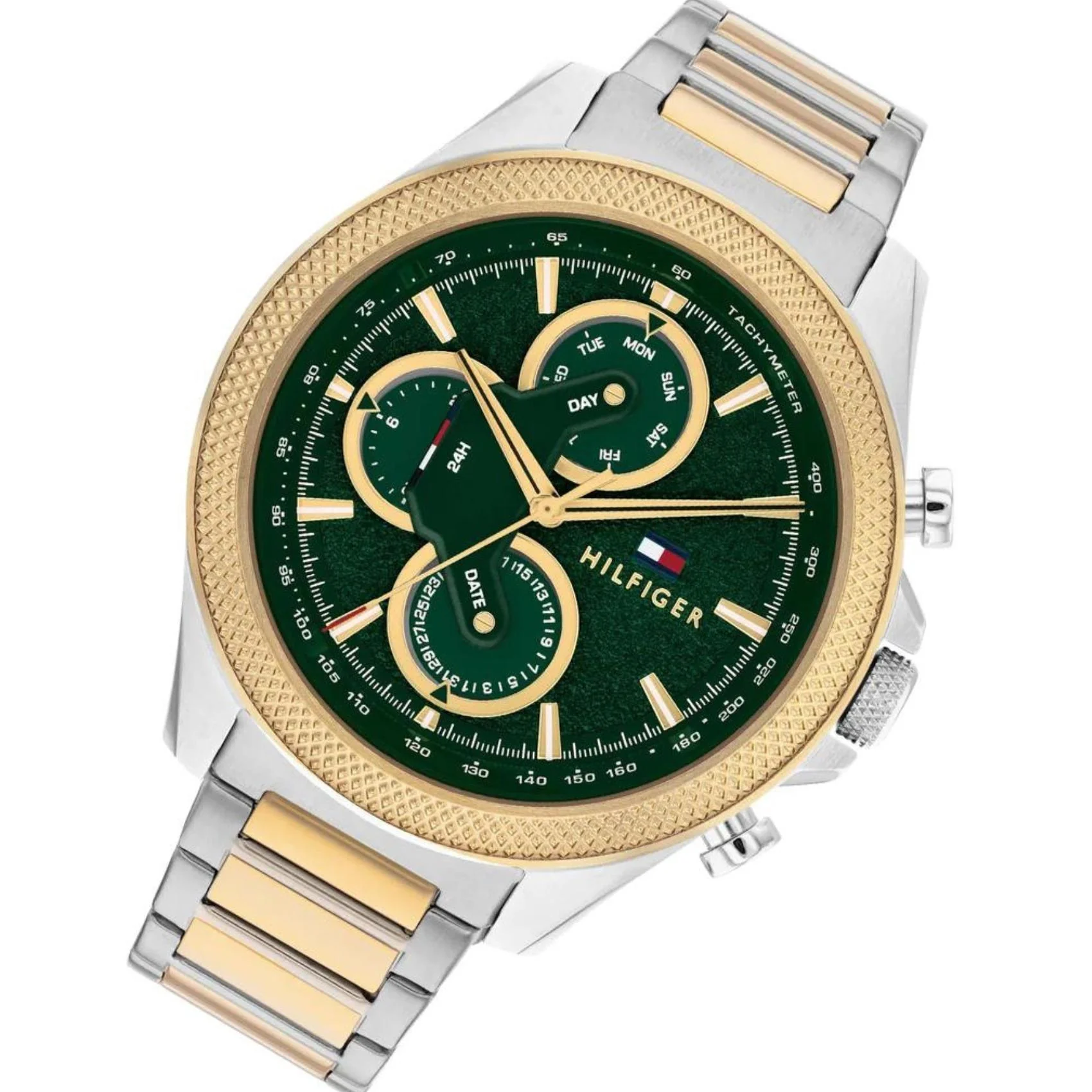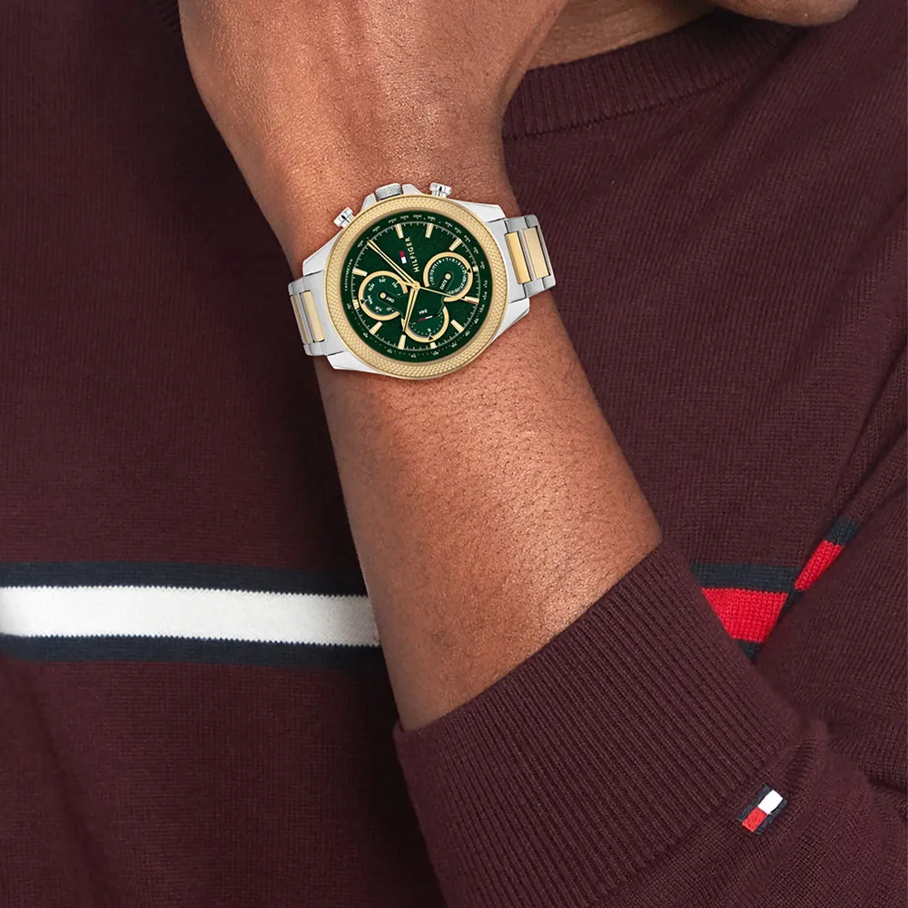 ساعة تومي هيلفيغر للرجال أصلية موديل 1792079 لون اخضر و استيك معدن ستانلس لون فضي * ذهبي.