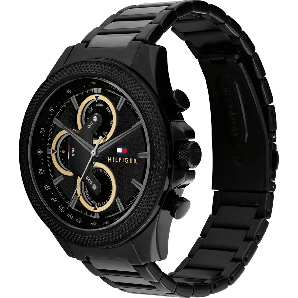 ساعة تومي هيلفيغر للرجال أصلية موديل 1792081 لون اسود و استيك معدن ستانلس لون اسود.