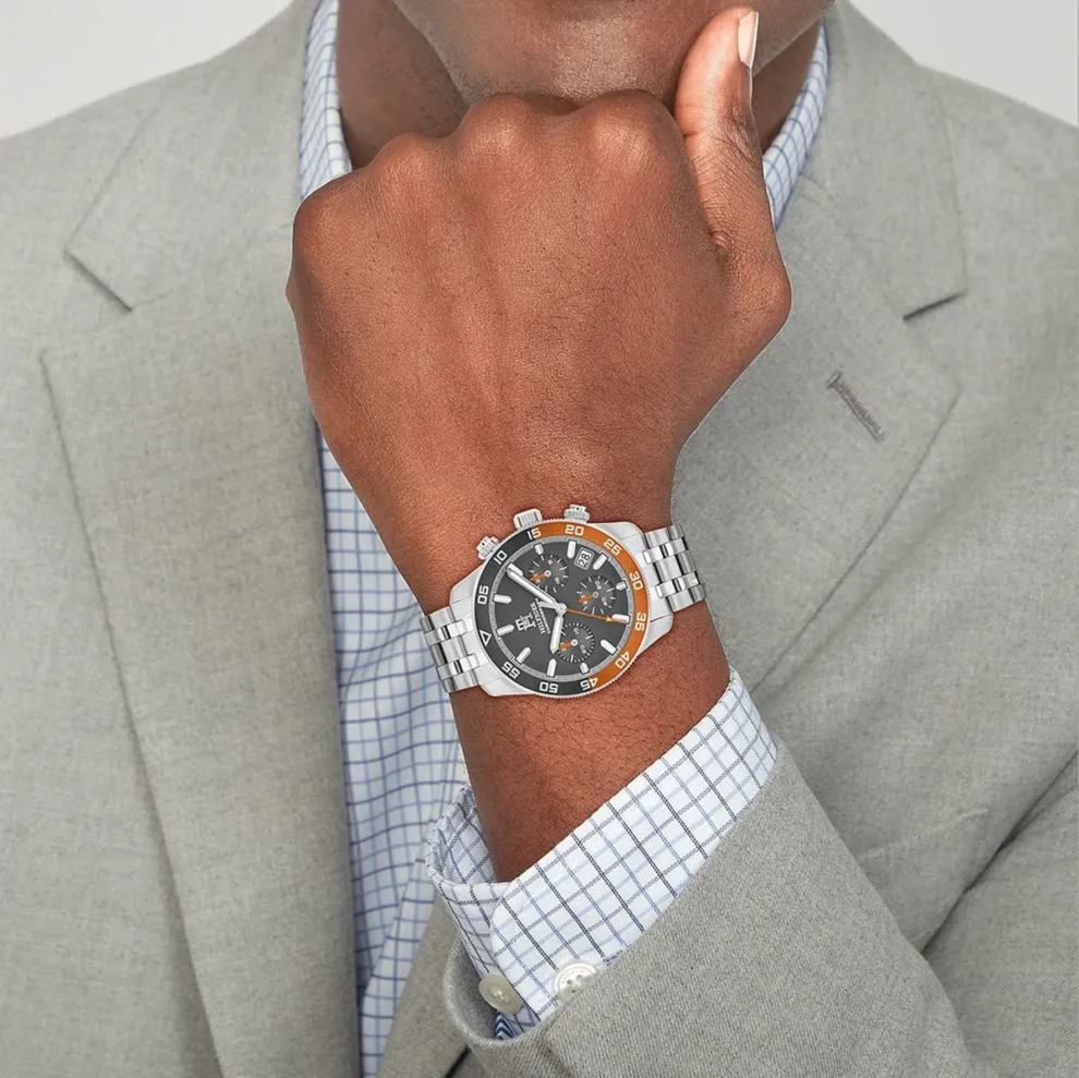 تومي هيلفيغر للرجال أصلية موديل 1792186لون رمادي و استيك معدن ستانلس لون فضي.