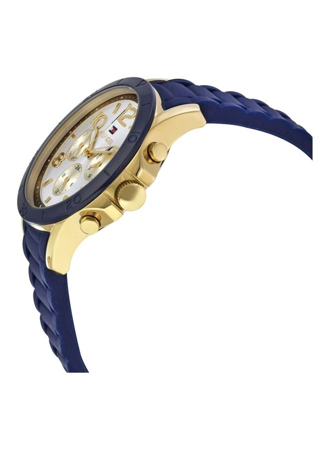 Tommy Hilfiger watch Tommy Hilfiger للسيدات أصلية موديل 1781523 Alex لون فضي و استيك سيليكون مطاط لون ازرق.