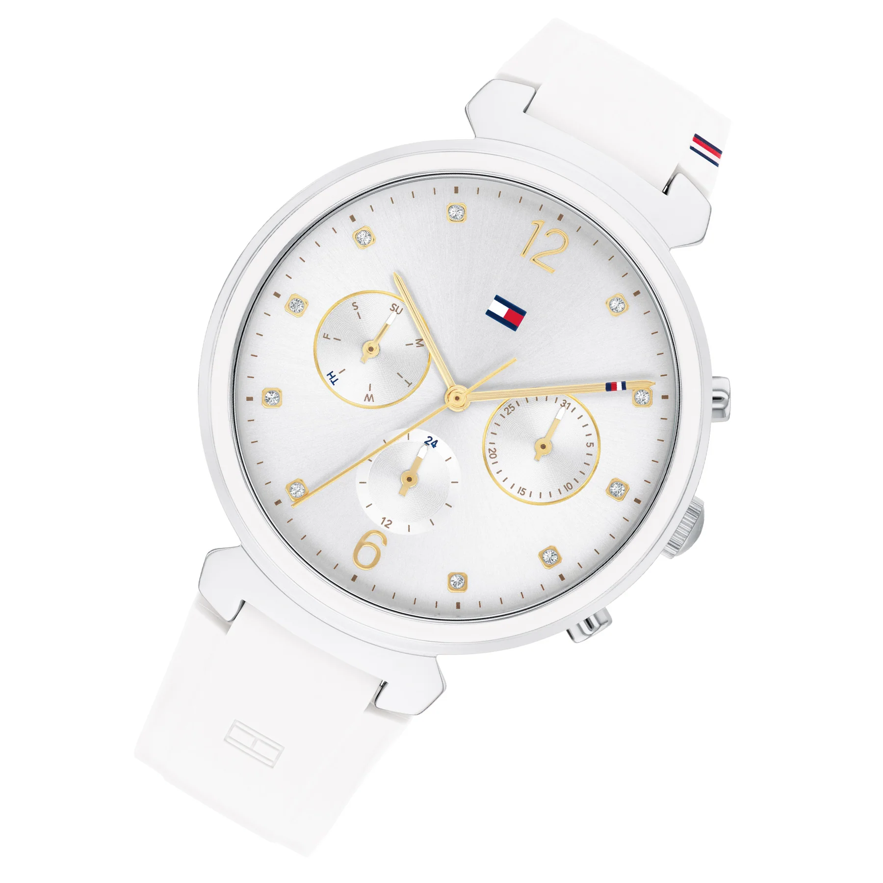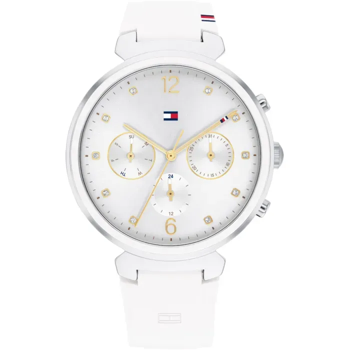 Tommy Hilfiger watch Tommy Hilfiger للسيدات أصلية موديل 1782342 لون ابيض و استيك سيليكون مطاط لون ابيض.