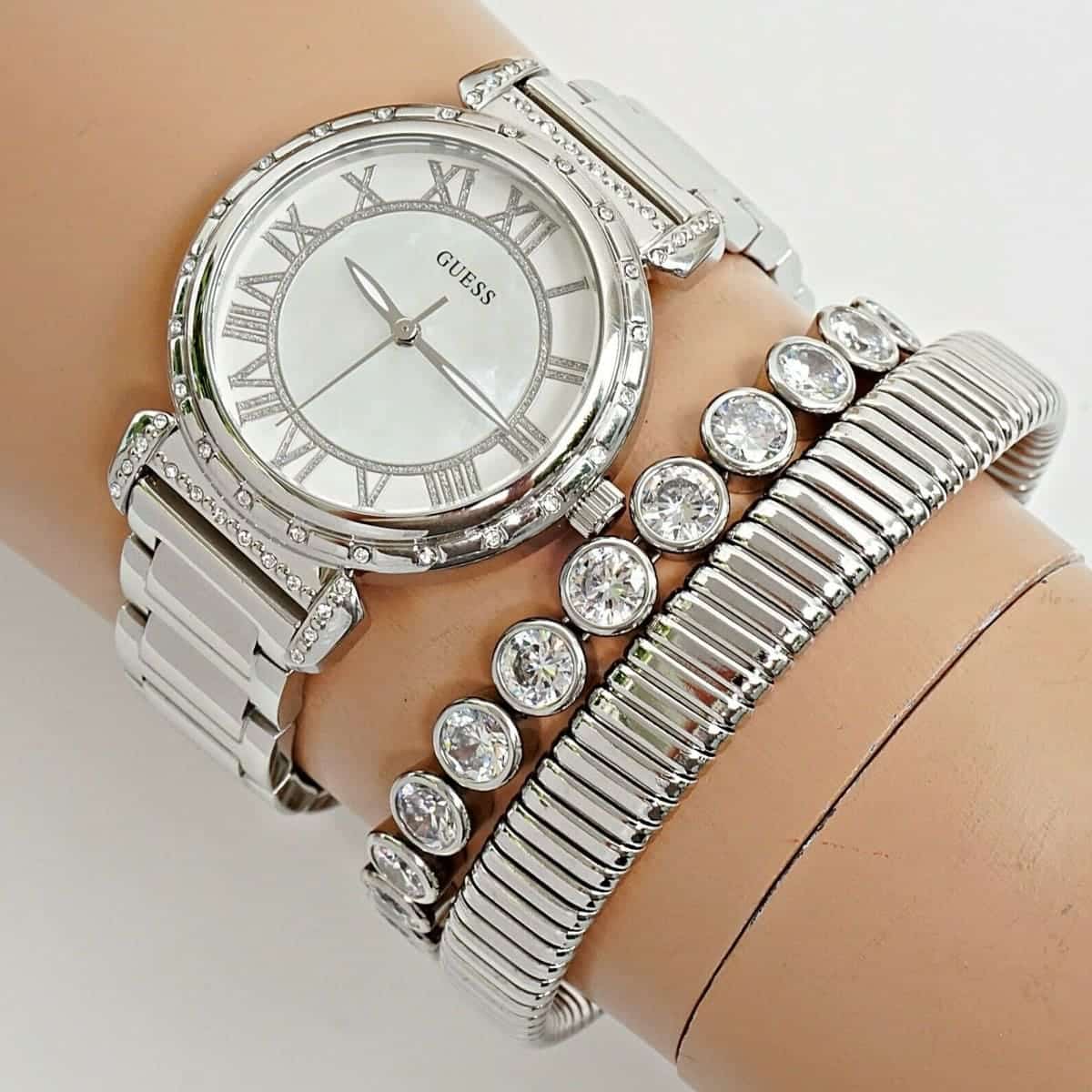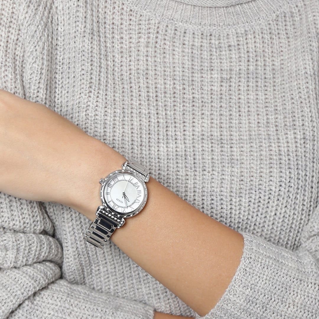 ساعة جيس للنساء اصلية موديل (ساوث هامبتون) South Hampton W0831L1 بلون ابيض واستيك معدن بلون فضي