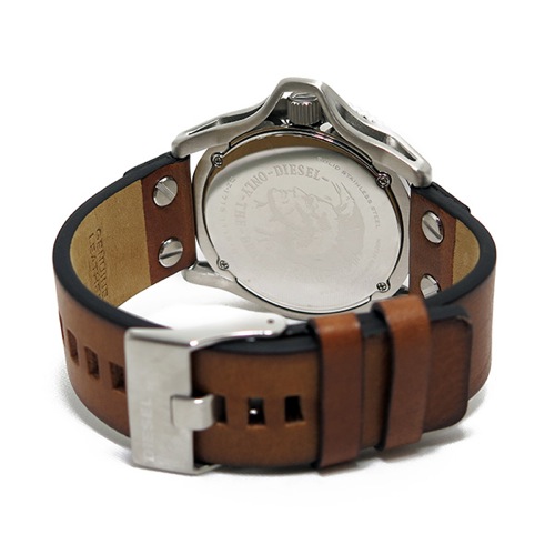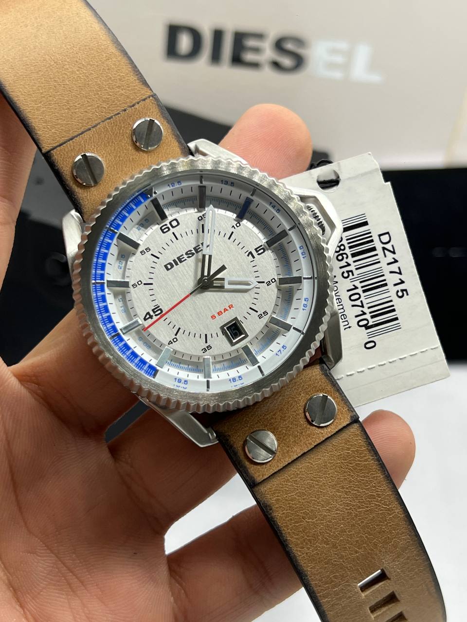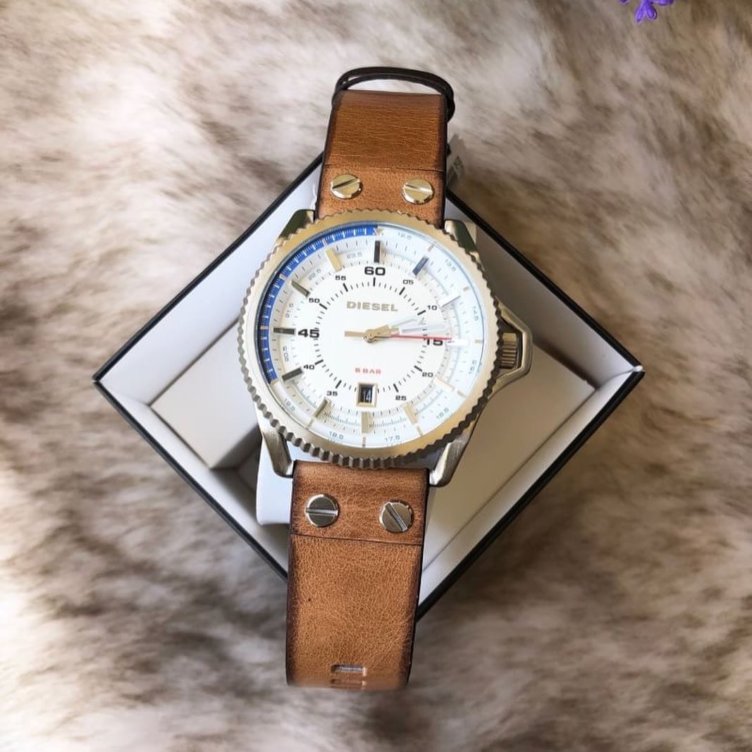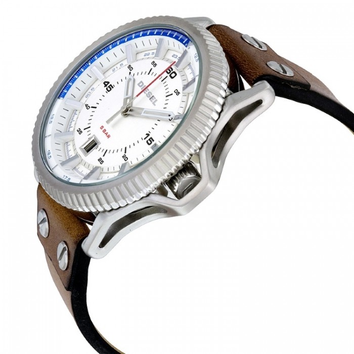 Diesel watch Diesel للرجال اصلية موديل Rollcage Exposed DZ1715 لون ابيض واستيك جلد طبيعي لون بني.