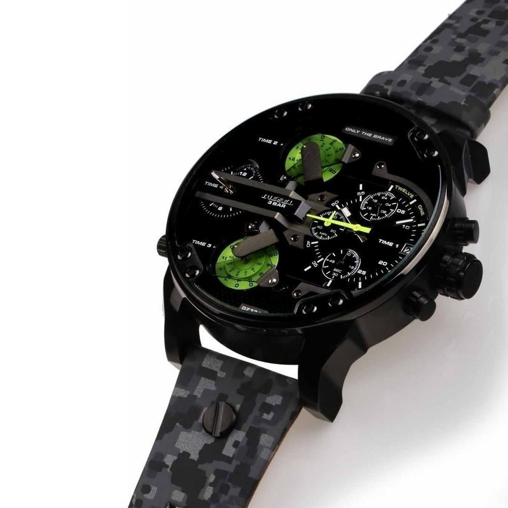 ساعة ديزل من عائلة موديلات مستر دادي DZ 7311 اليوم، سوف تأخذنا هذه العلامة التجارية إلى عالم آخر من الأناقة والجمال، هو عالم ساعات اليد الرجالية المميزة، اكتشف أفضل الساعات الرجالية من ديزل لأناقة بلا حدود ميناء أسود و أستيك لون أسود بشكل مميز عن ما قبل من الموديلات و تاخذ القطعه شكل دائري باطار وجسم من الستانلس ستيل المعالج حرارياً المقاوم للصدأ ليحظي بتجربة وديمومة رائعه فى الاستخدام بشكل يومي رائع وفعال