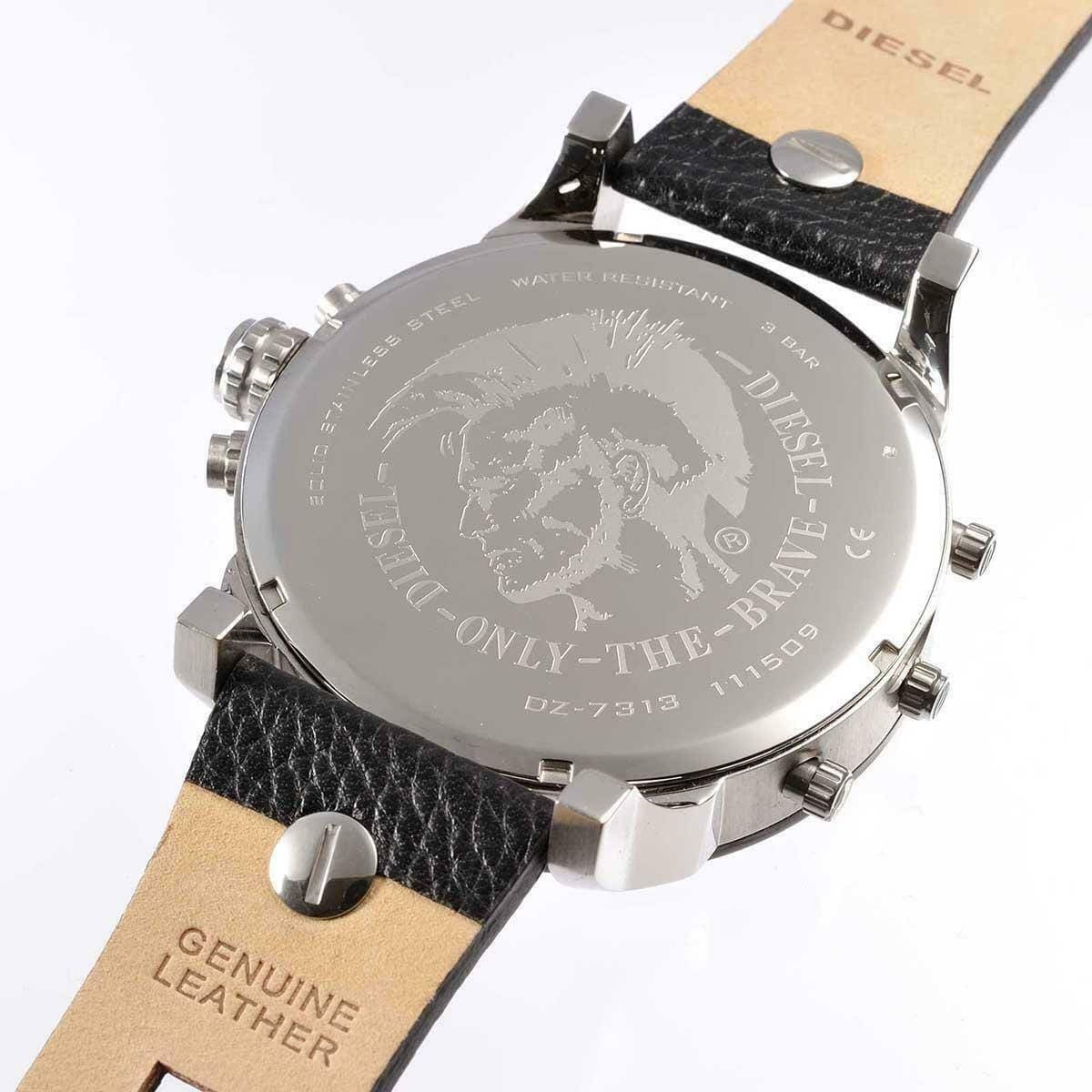 ساعة ديزل من عائلة موديلات مستر دادي DZ 7313 من أجمل الساعات الرجالية تتمتع بمواصفات رائعة ومذهلة. تساوي بجمالها الكثير، فهي مصدر الأناقة الرجالية، ونموذج فاخر يوضع على اليد بكل ثقة ليزيّن المعصم كل يوم بميناء أسود و أستيك لون أسود بشكل مميز عن ما قبل من الموديلات و تاخذ القطعه شكل دائري باطار وجسم من الستانلس ستيل المعالج حرارياً المقاوم للصدأ ليحظي بتجربة وديمومة رائعه فى الاستخدام بشكل يومي رائع وفعال