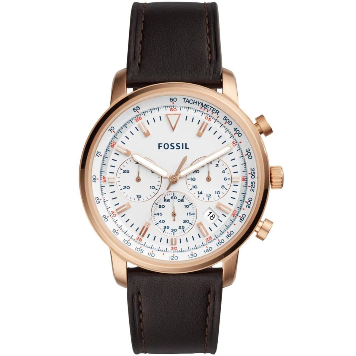 ساعة فوسيل للرجال اصلية موديل (جودوين) Goodwin FS5415 بلون ابيض واستيك جلد بلون بنى