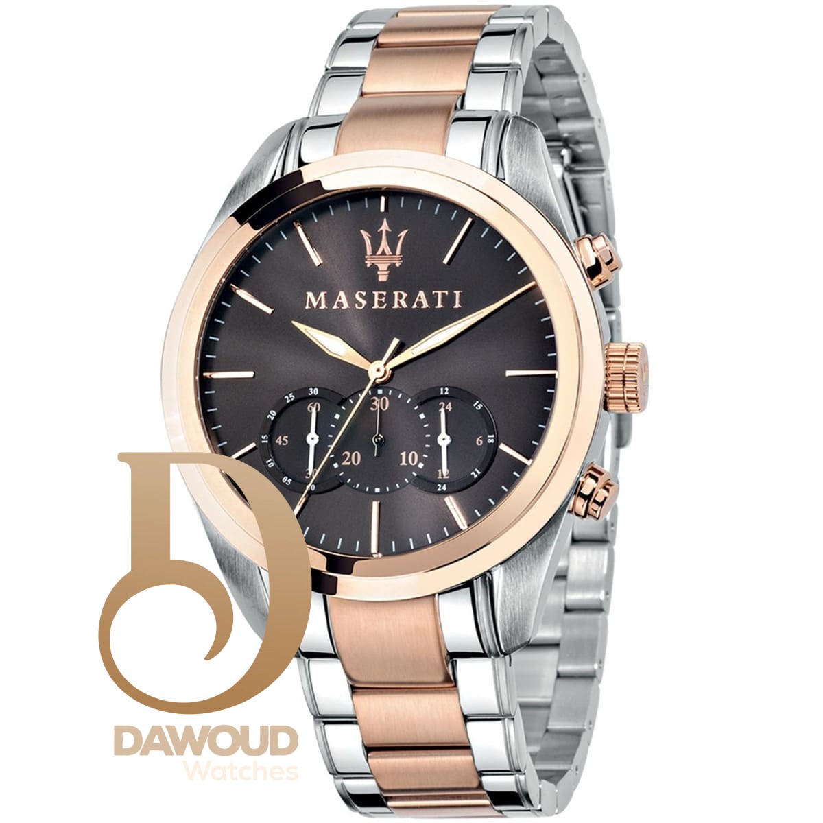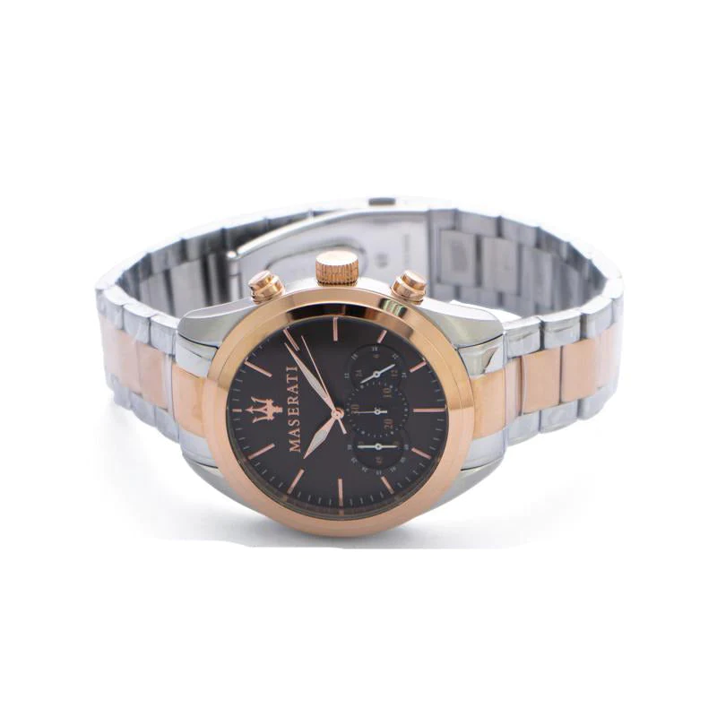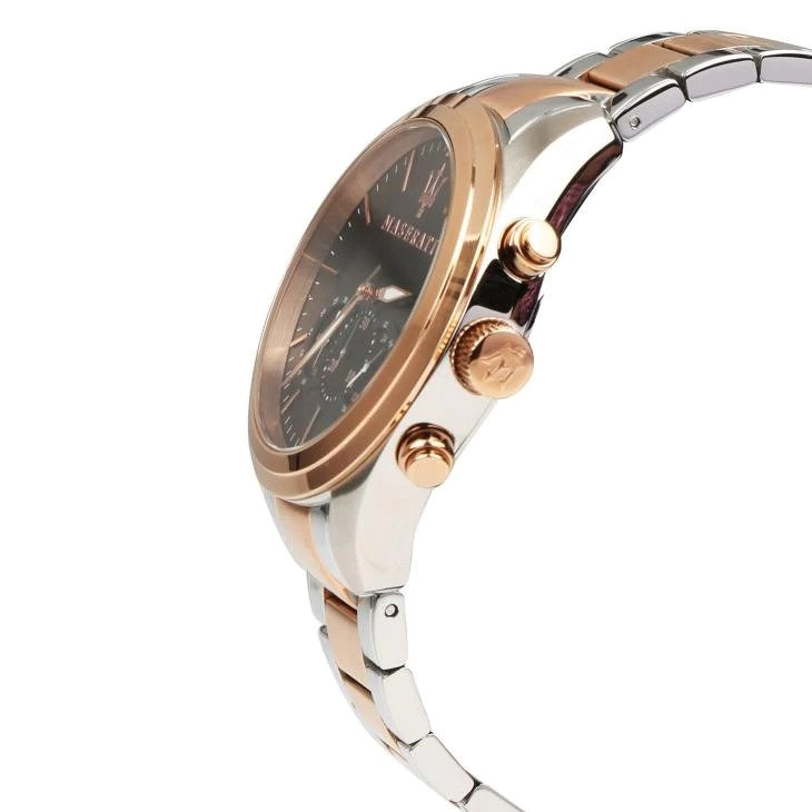 ساعة مازيراتي للرجال اصلية موديل (تراجواردو) Traguardo R8873612003 بلون بني واستيك لون فضي و نحاسي