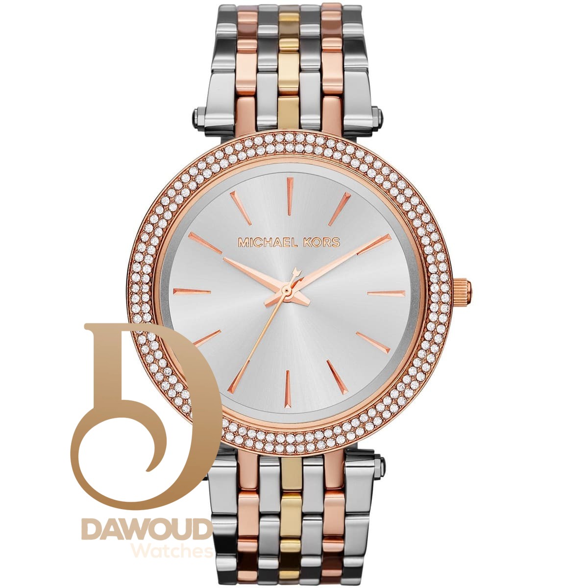 ساعة مايكل كورس للسيدات اصلية موديل (دارسي) Darci MK3203 بلون فضي واستيك معدن بلون فضي وذهبي و نحاسي