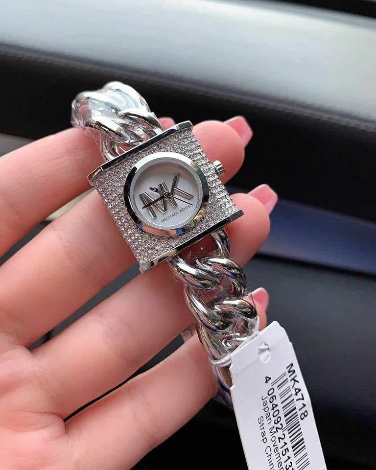 ساعة مايكل كورس للنساء أصلية موديل MK4718 لون فضي و استيك معدن ستانلس لون فضي.