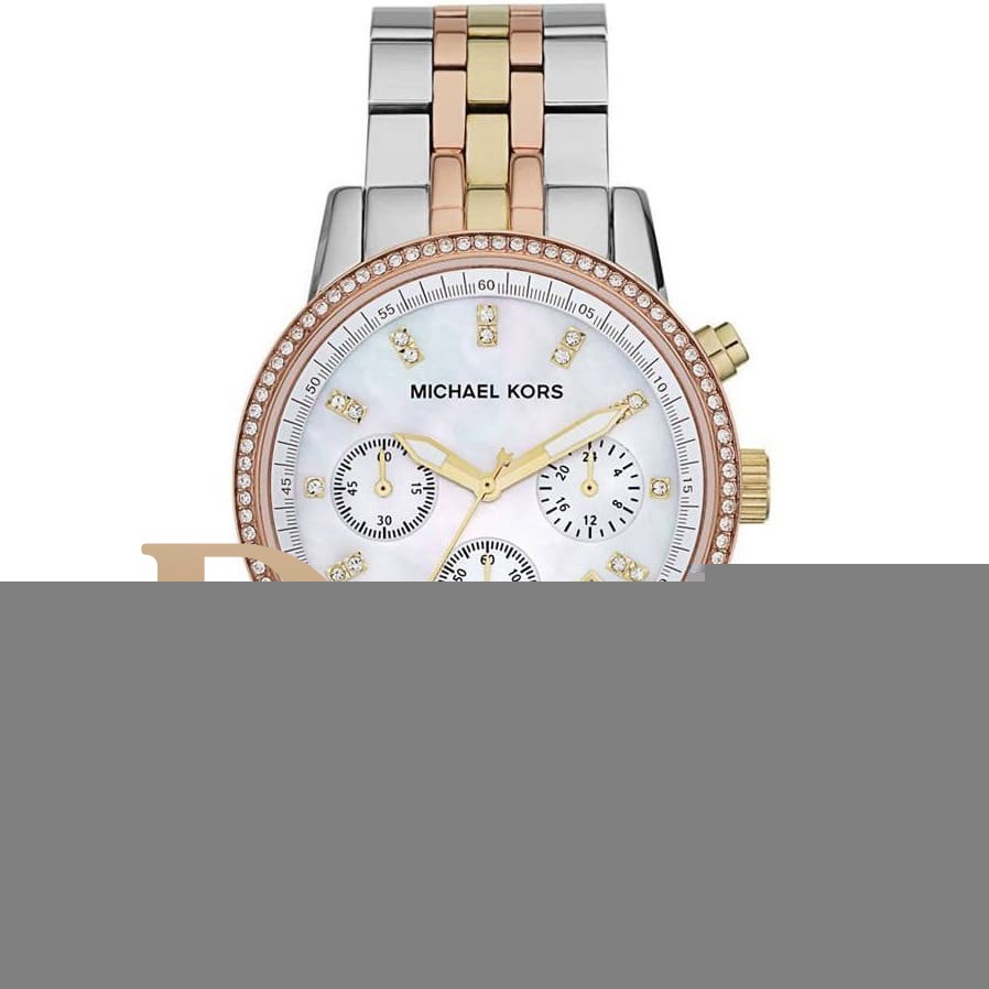 ساعة مايكل كورس للنساء اصلية موديل (ريتز) Ritz MK5650 بلون ابيض واستيك معدن بلون فضي ونحاسي و ذهبي