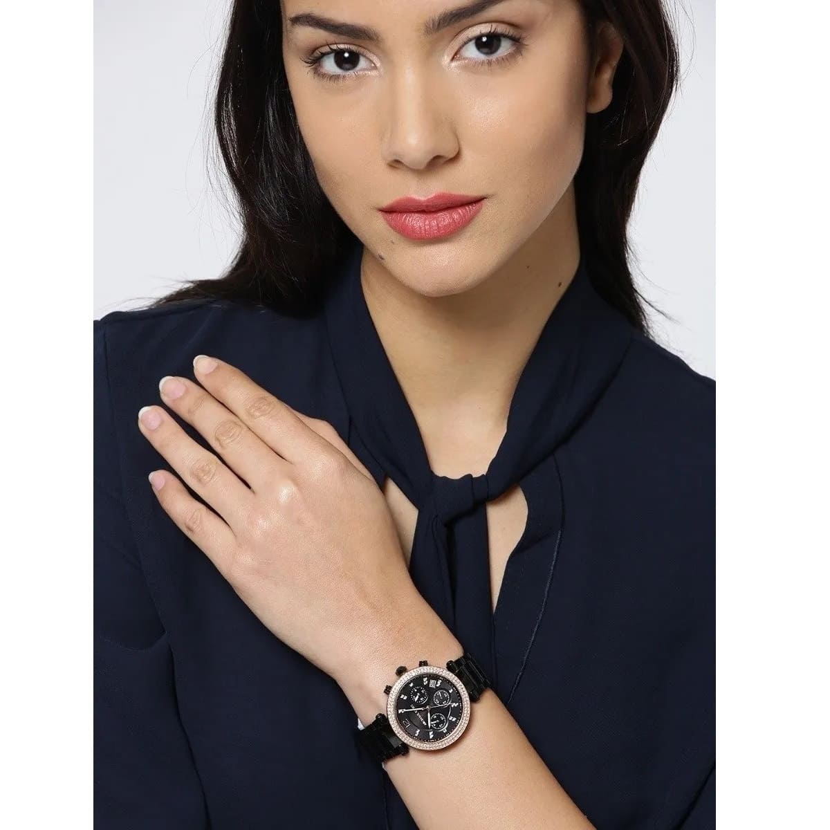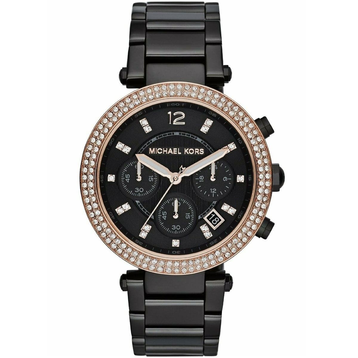 ساعة مايكل كورس للنساء اصلية موديل (باركر) Parker MK5885 بلون اسود واستيك معدن بلون اسود