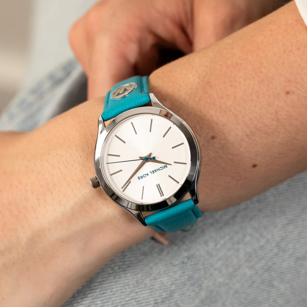 لون ابيض و استيك جلد لون ازرق
