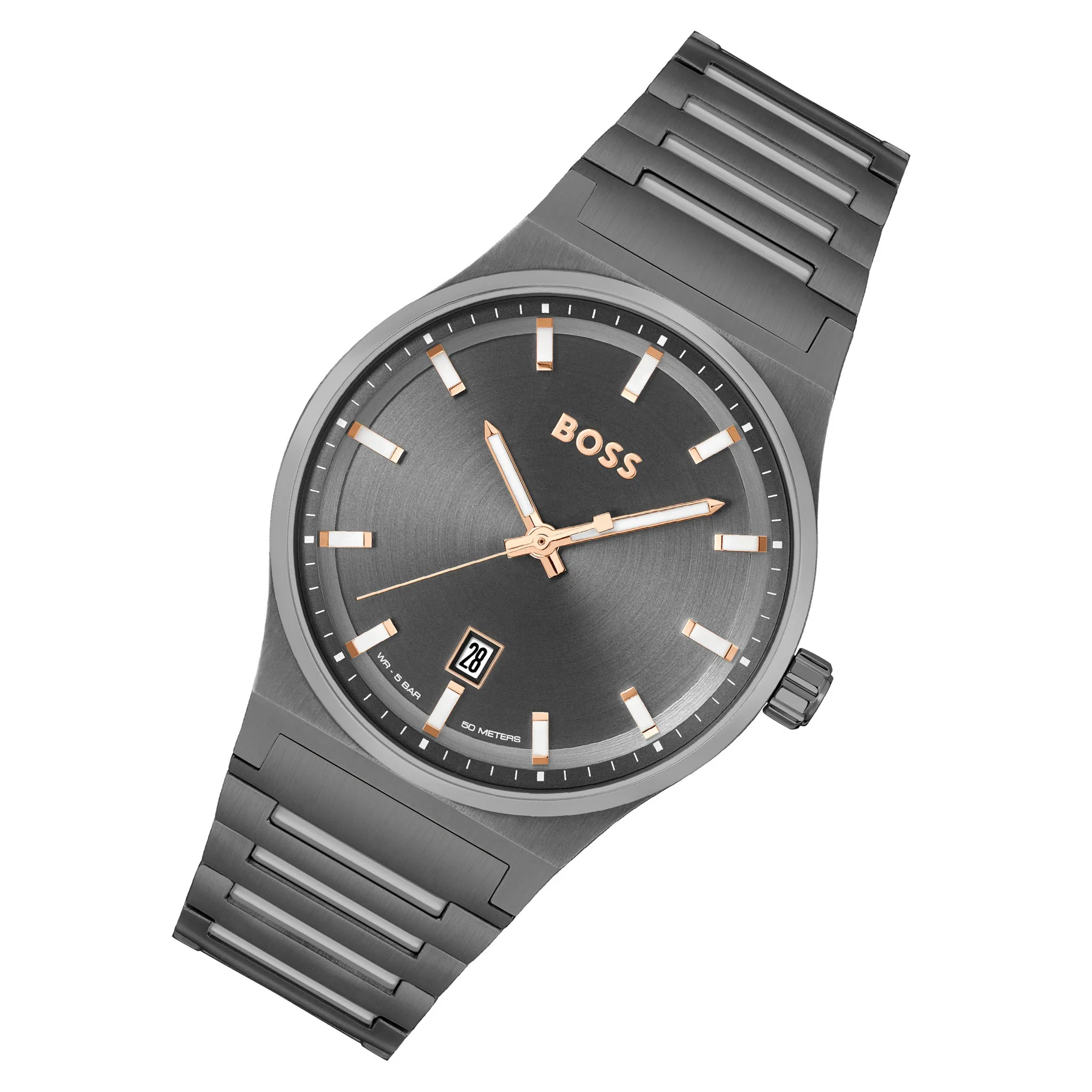 Hugo Boss watch Hugo Boss للرجال أصلية موديل 1514078 لون رمادي و استيك معدن ستانلس ستيل لون رمادي.