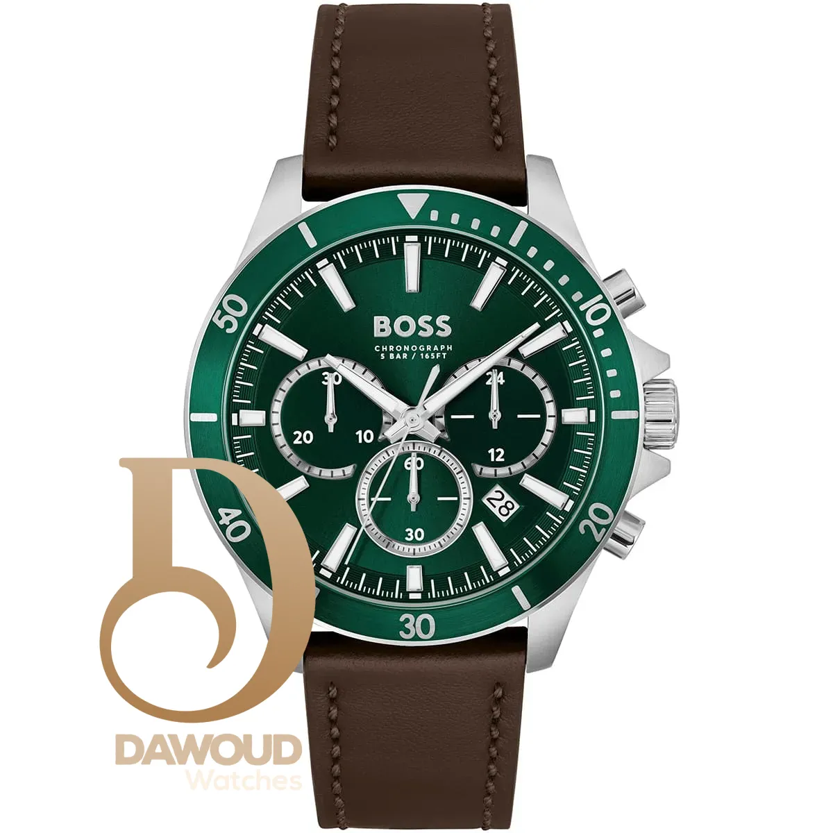 Hugo Boss watch Hugo Boss للرجال أصلية موديل 1514098 Troper لون اخضر و استيك جلد طبيعي لون بني.