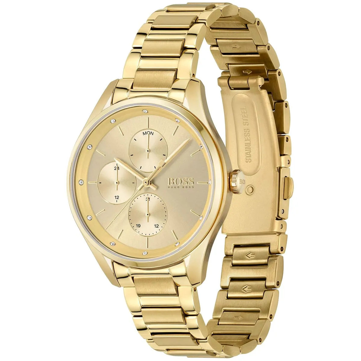 Hugo Boss watch Hugo Boss للنساء أصلية موديل 1502584 Grand Course لون ذهبي و استيك معدن ستانلس ستيل لون ذهبي.