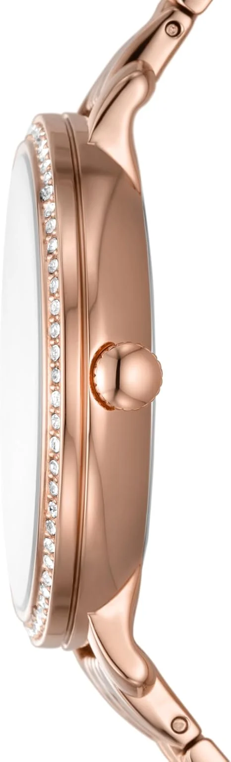 - WATCH BAND: Rose gold durable stainless steel band with a fold-over clasp closure; links can be removed for a customized fit; interchangeable with Fossil 14mm straps; dainty watch style