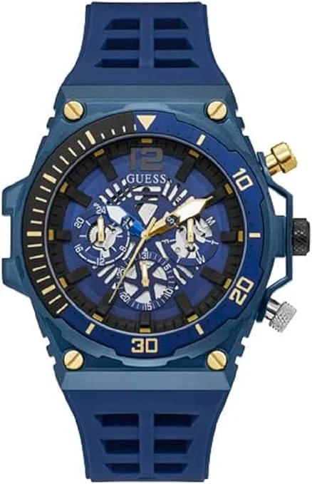 GUESS GW0443G1 Men’s Quartz Analogue Watch with Silicone Strap, Blue/Black, One Size, Black Blue, One size