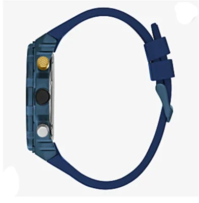 • Blue textured silicone strap 24mm fits up to 7.5″ wrist circumference