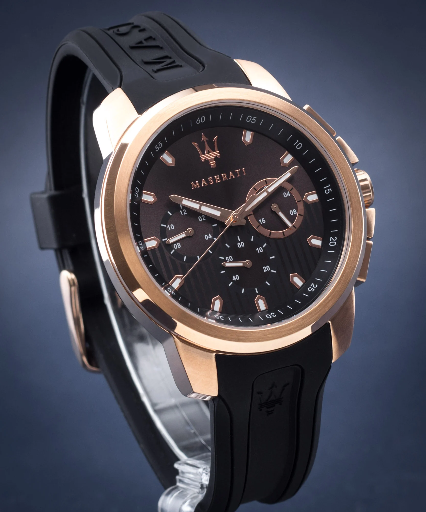 Maserati SFIDA Chronograph Black Dial Black Rubber Strap Watch For Men – R851123008