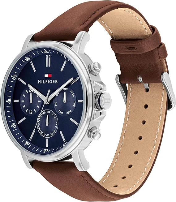 TOMMY HILFIGER MEN’S NAVY DIAL BROWN LEATHER WATCH – 1710585